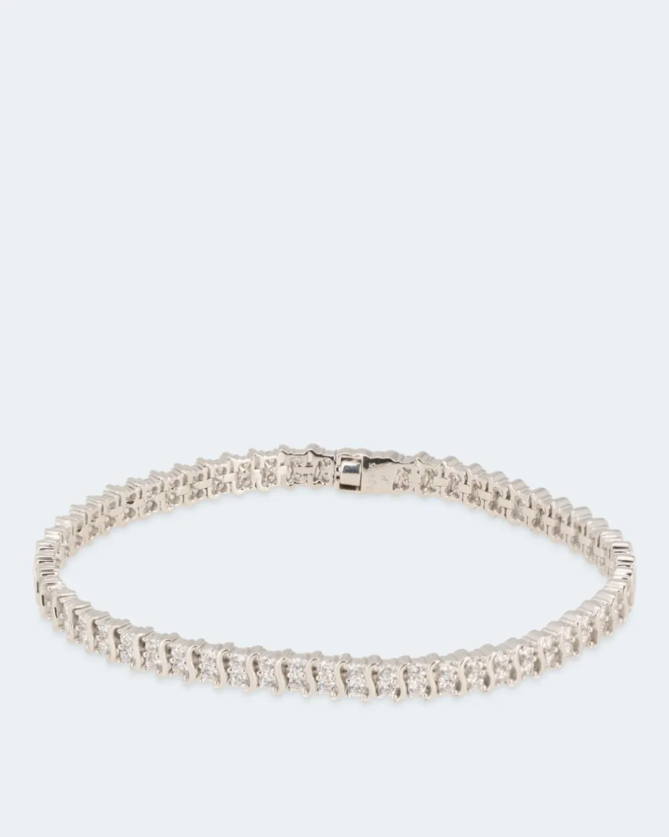 Lieben auch Sie die zeitlose Optik von wertvollem Brillantschmuck? Wollen aber nicht die Mondpreise zahlen, die dafür allzu oft aufgerufen werden? Dann sollten Sie dieses Armband ganz genau betrachten: Das ist rundherum mit insgesamt 98 weißen Zirkonia ausgefasst. Die gleich großen Kristalle sind im Brillantschliff veredelt und funkeln auch genauso verführerisch wie ihre echten Geschwister. Das Silber-Armband steht in drei Längen zur Wahl, so findet sich für jedes Handgelenk genau das richtige Modell.
