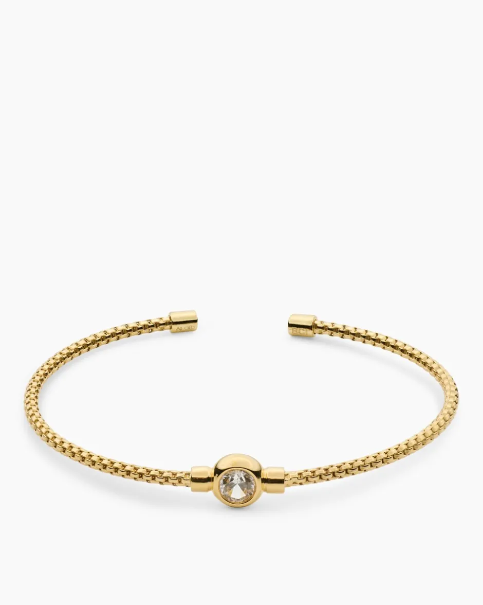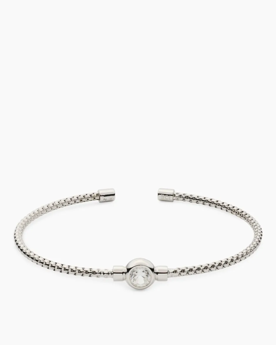 Ein Armreif ist ein schickes Accessoire, das Ihr Handgelenk sexy betont und jede Ihrer Gesten stilvoll unterstreicht. Ganz ohne Verschluss ist er schnell und unkompliziert übergestreift. Dieser Armreif ist aus hochglanzpoliertem Silber 925 designt, das Sie wahlweise rhodiniert in Weißgold-Optik oder gelbgoldplattiert mit warmem Goldschimmer bestellen können. Highlight des Armreifs ist der Besatz mit einem weißen Zirkon. Der runde Edelstein ist facettiert und glitzert zauberhaft bei jeder Ihrer Bewegungen. Das Accessoire in sehr eleganter, aber doch dezenter Optik rundet Ihren Look harmonisch ab.