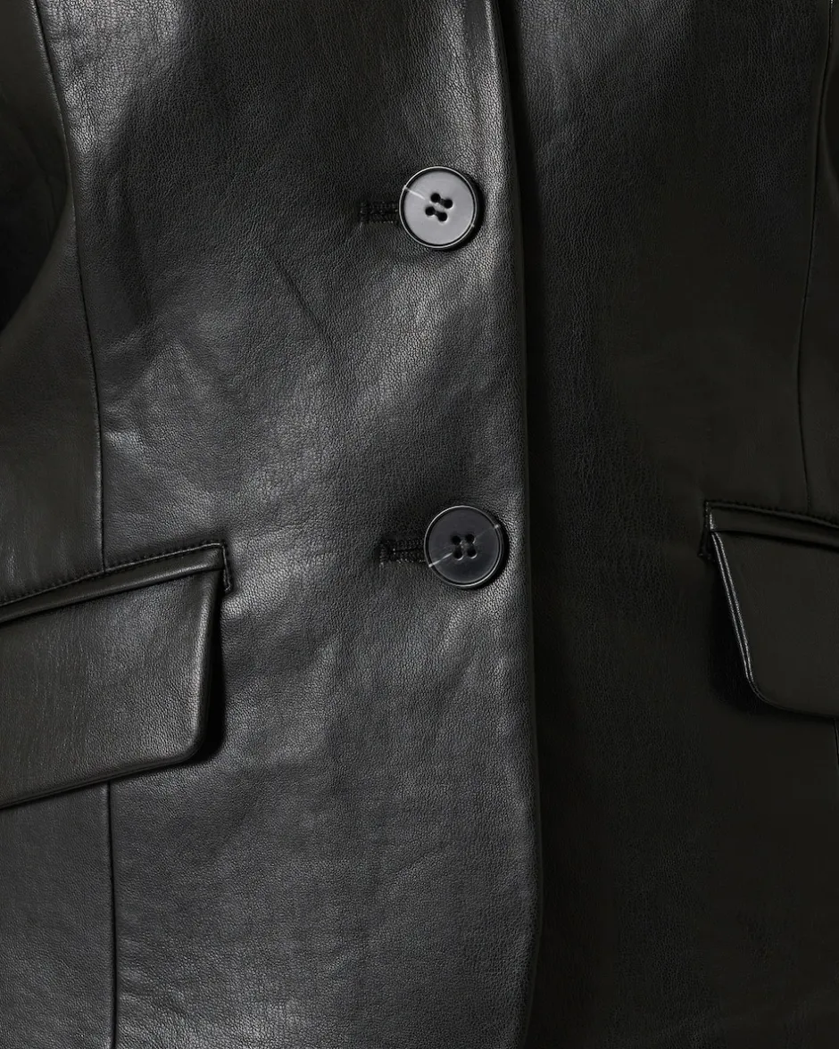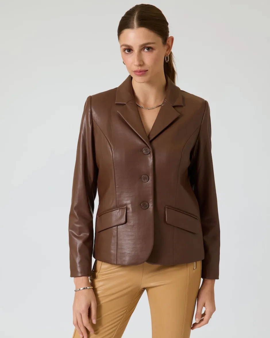 Ob für stylische Ausgeh-Looks oder als Teil Ihrer Business-Garderobe – mit diesem Blazer in glänzender Lederoptik sind Sie immer top angezogen. In Schwarz oder Dunkelbraun zur Wahl. Ausgestattet mit klassischem Reverskragen, zwei Pattentaschen und drei Knöpfen zum Schließen. Jederzeit besten Tragekomfort garantieren die Wiener Naht und das weiche Futter. Kombinieren Sie nach Herzenslust. Oder Sie bestellen die passende Hose im selben Design gleich dazu (468954).