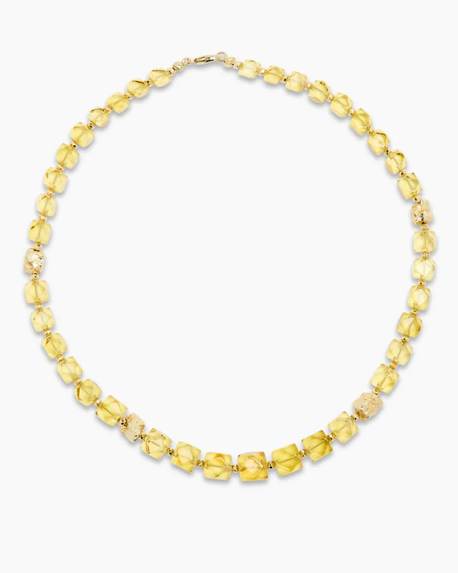 Dieses außergewöhnliche Sogni d’oro Collier kombiniert das faszinierende Naturphänomen Bernstein mit weiteren Edelstein-Akzenten. Die tiefgelben Bernsteine wurden in aufsteigender Größe angeordnet und erzeugen damit eine Aura zeitloser Eleganz und Harmonie. Teil der Kreation sind zudem kleine Pyrit-Nuggets sowie goldfarbene Hämatite (beh.). Das Collier hat die klassische Länge von 45 Zentimetern sowie einen Karabinerverschluss aus feinem Gelbgold (375). Ein zeitloser schöner Halsschmuck, den Sie bestimmt oft tragen werden.