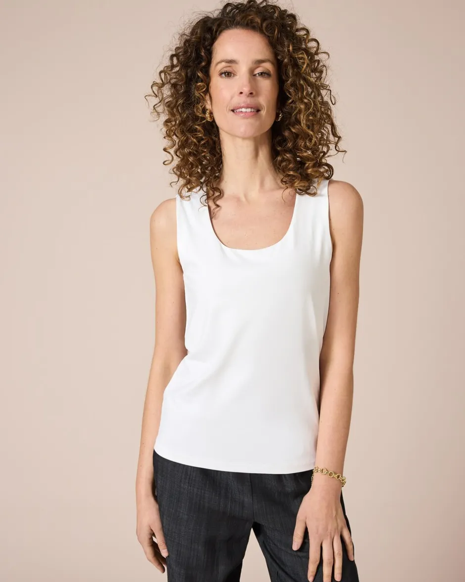 Verlieben Sie sich in unser ärmelloses Top im Uni-Design. Die klare Linienführung und der Rundhalsausschnitt in leichter Karreeform bieten ein zeitloses Design mit außergewöhnlicher Eleganz. Dank des doppellagigen Oberteils ist das Top blickdicht und schenkt Ihnen willkommene Bewegungsfreiheit. Die breiten Träger versprechen zusätzlichen Komfort und unterstreichen den minimalistischen Chic. Dieses vielseitige Stück lässt sich mühelos mit Ihrer Garderobe kombinieren, sei es für einen entspannten Tag in der Stadt oder einen eleganten Abend. Entdecken Sie die Schönheit im Simplen.