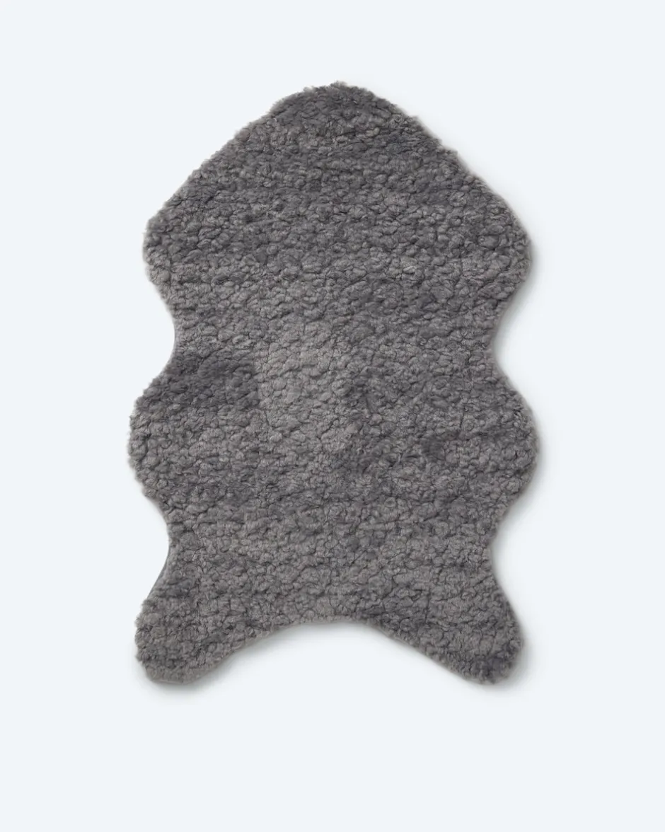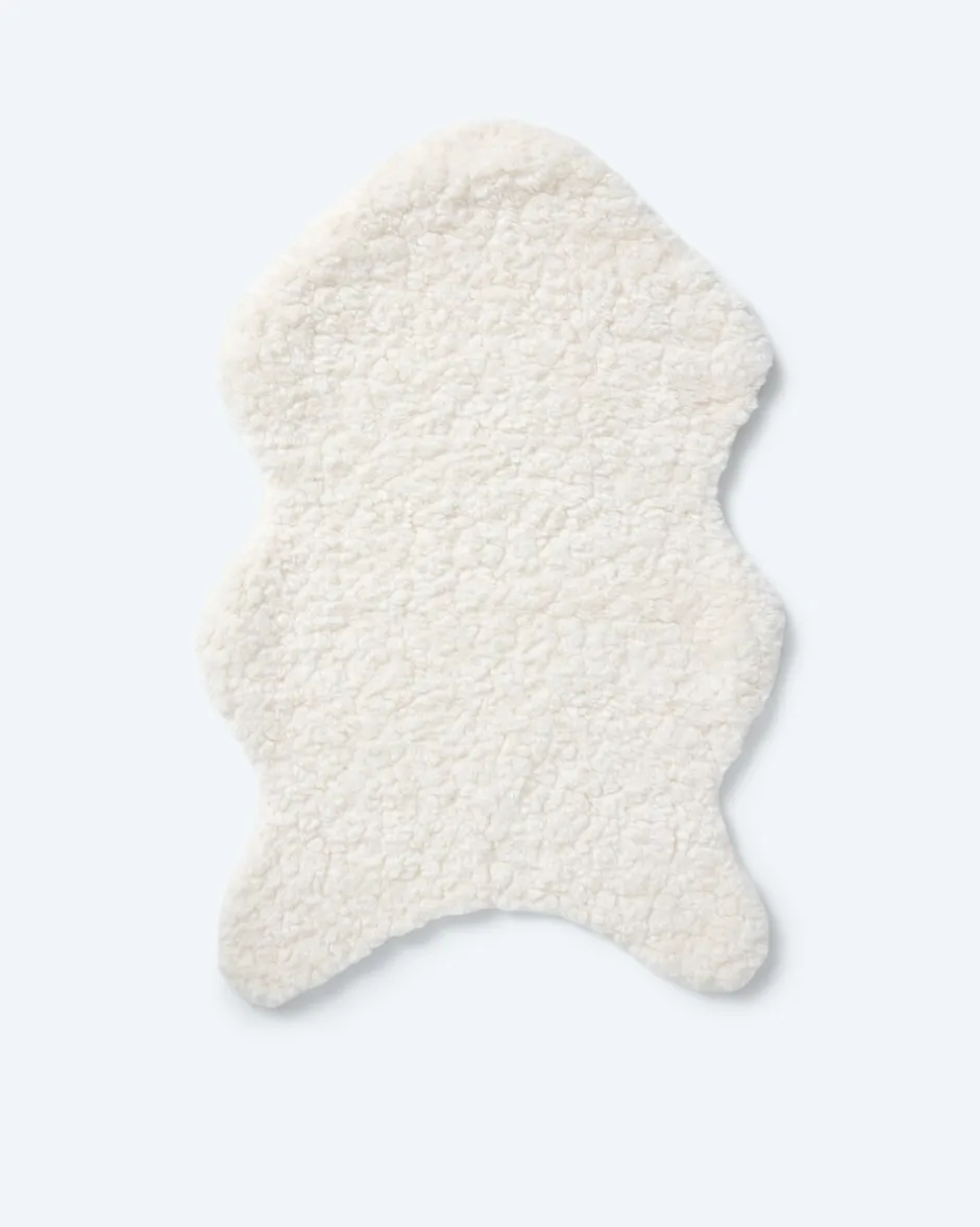 Material: | 100 % Polyester Obermaterial: Curled-Lammfellimitat (Flächengewicht: 800g/m²) mit Antirutsch-Dots | |