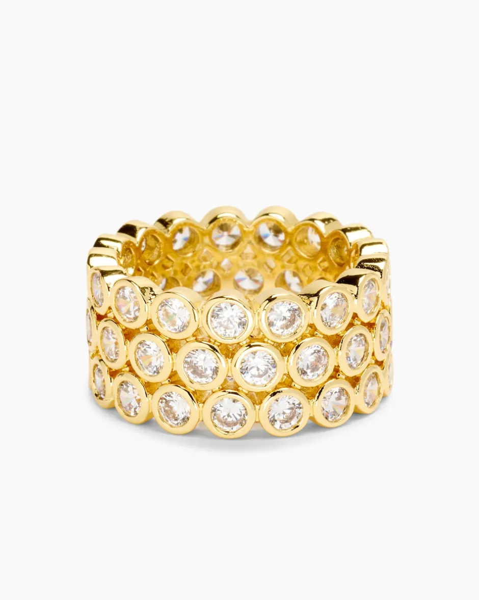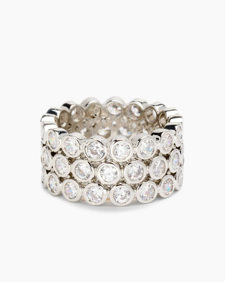 Eine modisch breite Ringschiene, die dreireihig mit mindestens 51 weißen Zirkonia besetzt ist macht den Charme dieses tollen Rings aus. Der Ring ist aus hochglanzpoliertem Messing geschmiedet, das Ihnen gelbvergoldet mit warmem Schimmer und palladiniert in kühl-eleganter Platinoptik zur Verfügung steht. Die runden Zirkonia sind im Facettenschliff veredelt und glitzern fast so schön wie echte Brillanten. Wussten Sie, dass selbst Fachleute Zirkonia auf den ersten Blick nicht von echten Brillanten unterscheiden können? Wenn Sie also einen glamourös funkelnden Ring zum kleinen Preis wünschen, ist das Ihr Ring.