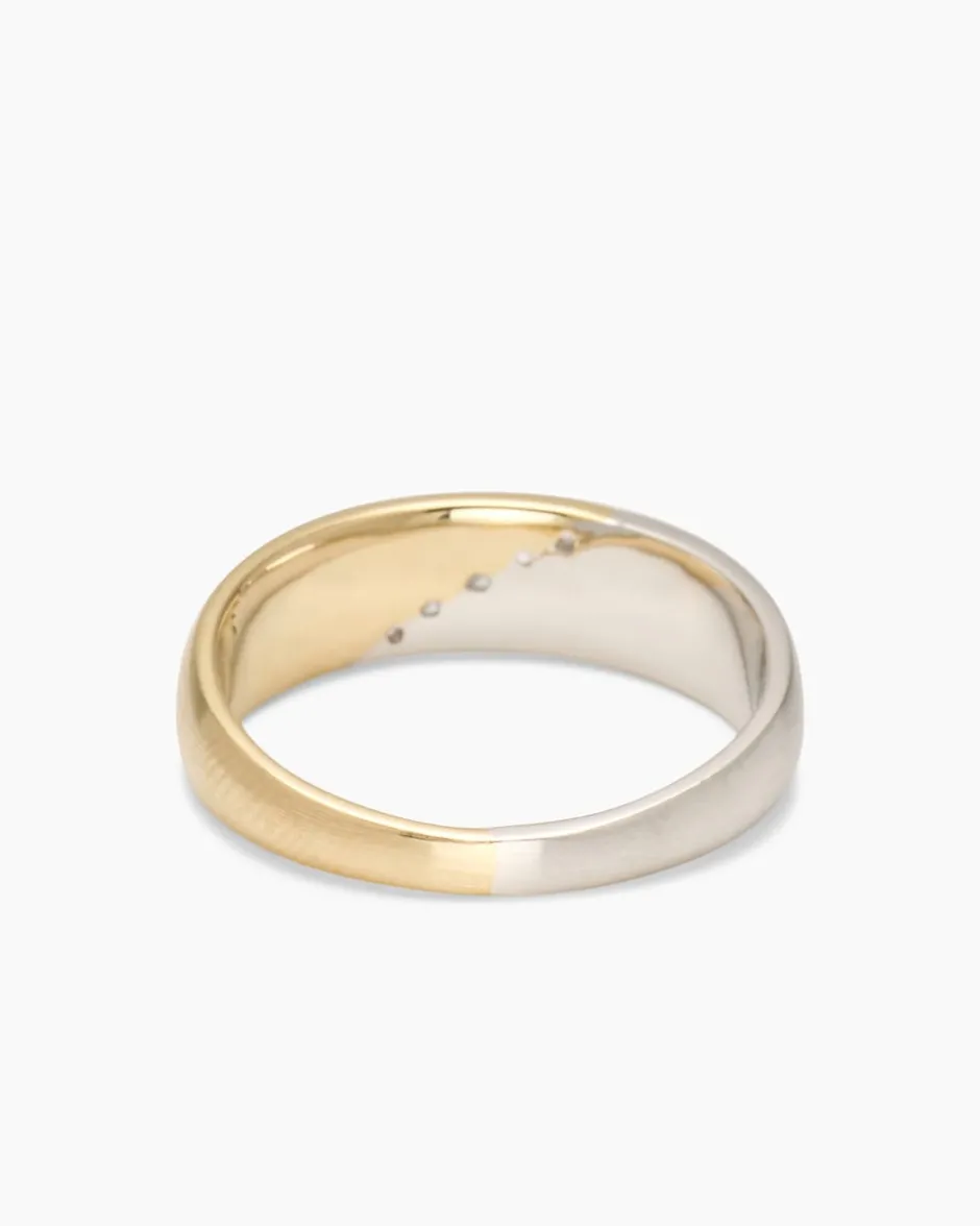 Ab und zu begegnet uns ein Schmuckstück, das sofort ins Auge fällt und dauerhaft im Gedächtnis bleibt. So ein Schmuckstück ist dieser sensationelle Designerring aus der Linie Diamantaire: Gelbgold in hochwertiger 585er Qualität, allerfeinstes Platin 950 und nicht zuletzt fünf lupenreine Brillanten vermählen sich hier zu einem Gesamtkunstwerk, dessen unvergängliche Präsenz Sie immer wieder aufs Neue begeistern wird. Mittig auf dem Ringkopf verläuft die diagonal angesetzte Grenze zwischen Platin und Gold. Genau auf dieser Linie sind die weißen Brillanten in einer Reihe eingefasst. Die herrlich funkelnden Steinchen in drei Größen begeistern auch durch ihre sehr gute Schliffqualität.