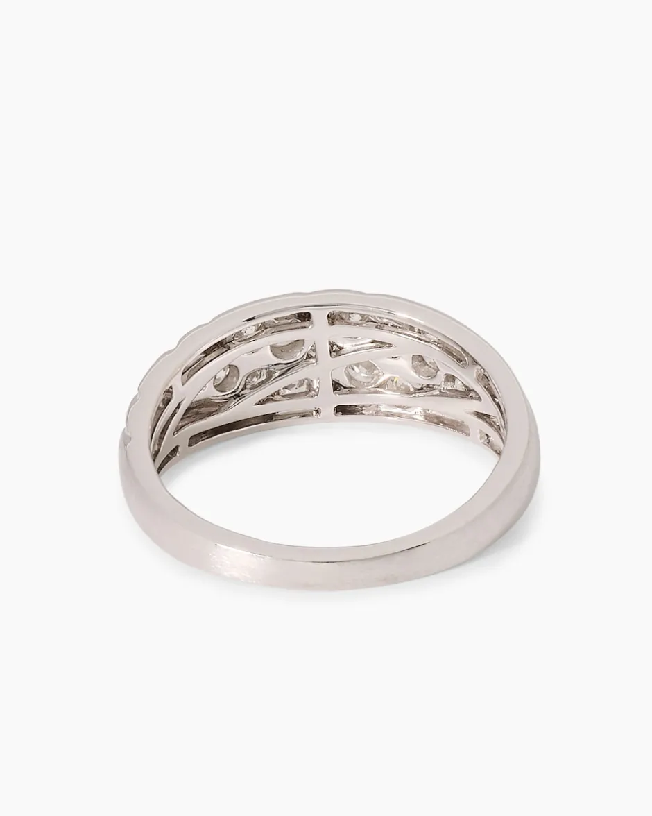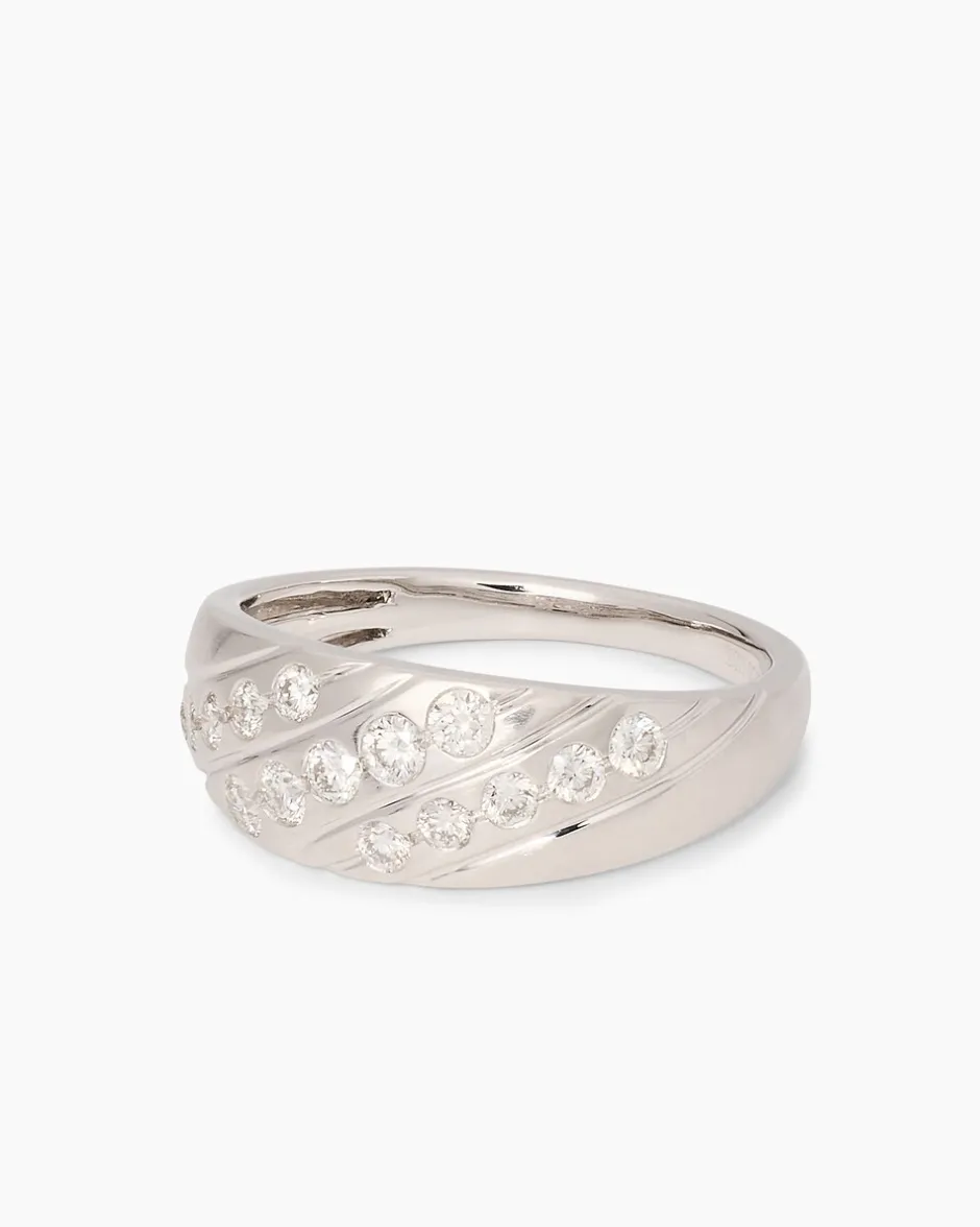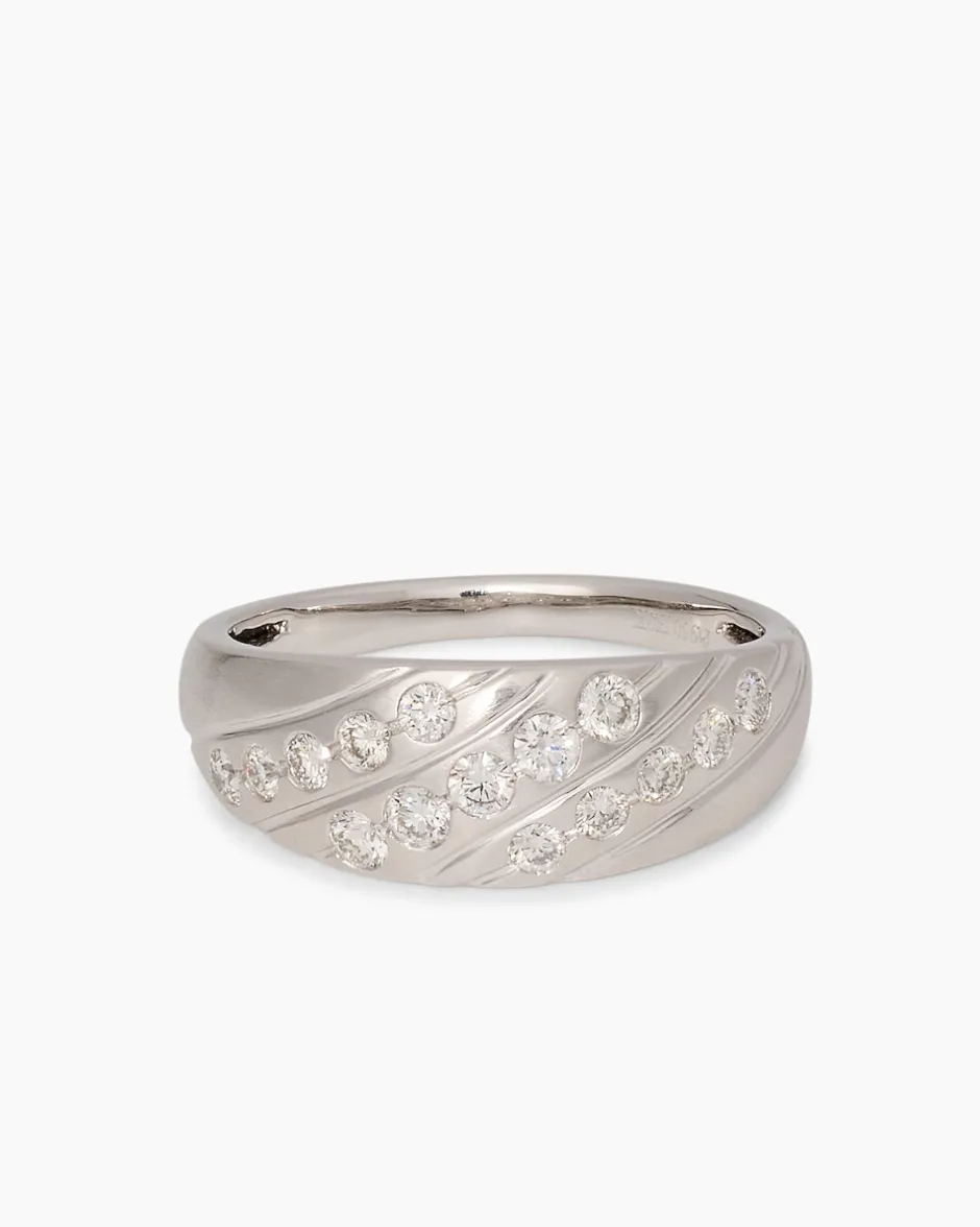 Stilvoll klar im Design und aus Platin und Brillanten gefertigt – der wertvolle Ring von Diamantaire ist ein Blickfang, der Eindruck macht. Je fünf Brillanten sind in diagonal laufenden Reihen auf dem hell schimmernden Platin eingerieben. Der Ring ist im Stil eines Bandrings gearbeitet und schmiegt sich angenehm um Ihren Finger. Für Ihren Tragekomfort verjüngt sich die Ringschiene nach hinten etwas. Mit diesem Schmuckstück geben Sie jeder Ihrer Gesten ein einzigartiges Schimmern und Strahlen.