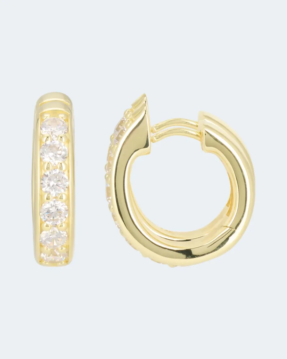 Eleganter Ohrschmuck in der unwiderstehlichen Optik sündhaft teurer Brillant-Creolen: Diese Accessoires sind mit je sechs weißen Zirkonia im Brillantschliff ausgefasst. Durch die feinen Facetten funkeln die Kristalle bei jedem Lichteinfall genauso hinreißend wie echte Brillanten. Die Creolen passen zu jeder Mode und stehen jeder Frau – egal welche Frisur Sie tragen. Zur Wahl in warmer Gelbgold- oder cleaner Weißgold-Optik, also gelbvergoldet oder silberweiß rhodiniert.