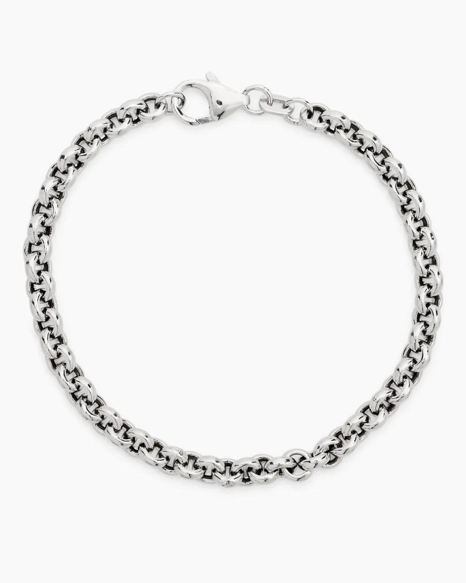 Das Armband ist aus hochglanzpoliertem 925er Sterlingilber geschmiedet und steht Ihnen rhodiniert in Silberweiß und gelbvergoldet mit warmem Schimmer zur Verfügung. Die zarten Glieder sind im beliebten Erbsketten-Design gearbeitet. Das Armband ist zeitlos schön und ein femininer Eyecatcher an Ihrem Handgelenk. Der Armschmuck ist in zwei Längen erhältlich und wird mit einem sicheren Karabiner verschlossen.