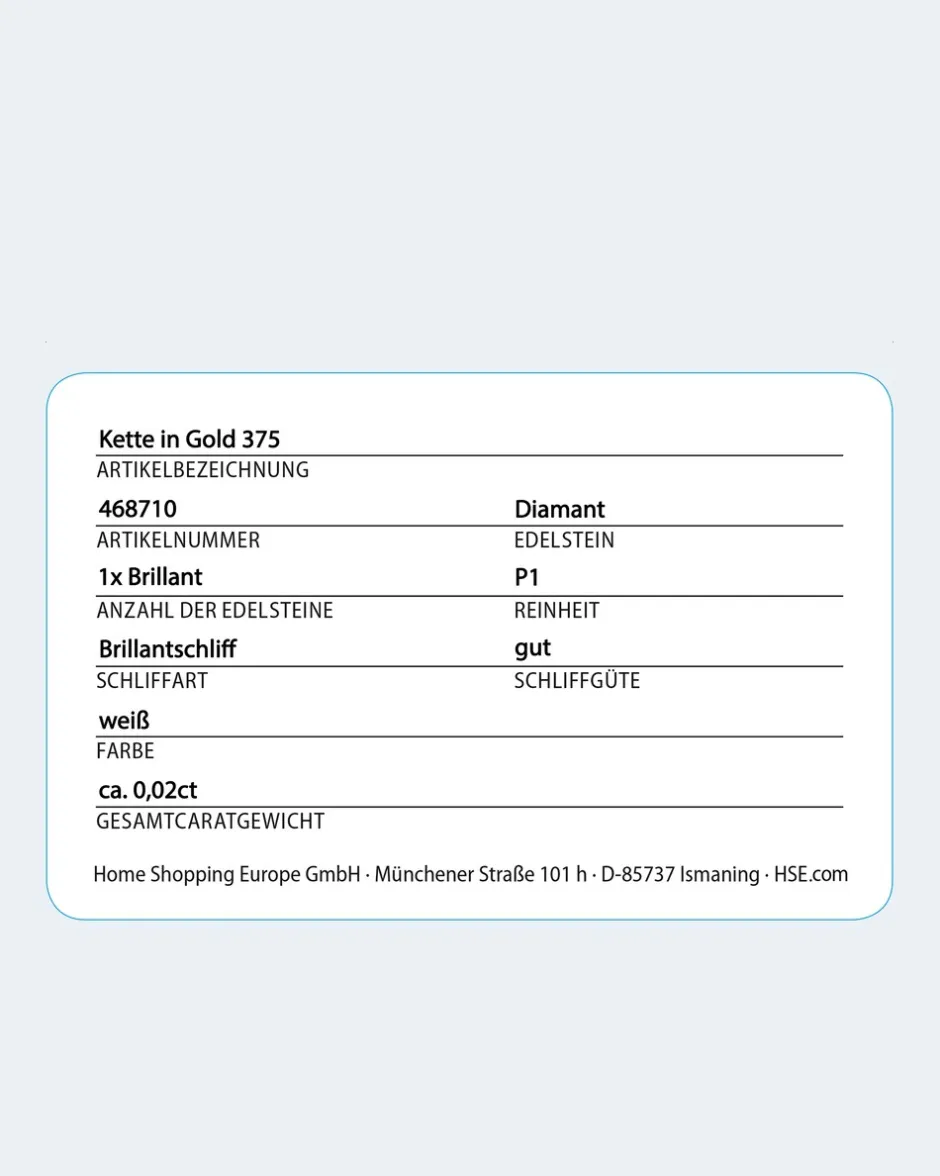 Natürlich ist das 375er Gelb- bzw. Weißgold, aus dem die Kette gefertigt ist, von ausgesuchter Qualität. Damit Sie in diesem Punkt sicher sein können, ist es auf Konformität mit den Bestimmungen der Schweizer Edelmetallkontrollgesetzgebung geprüft.