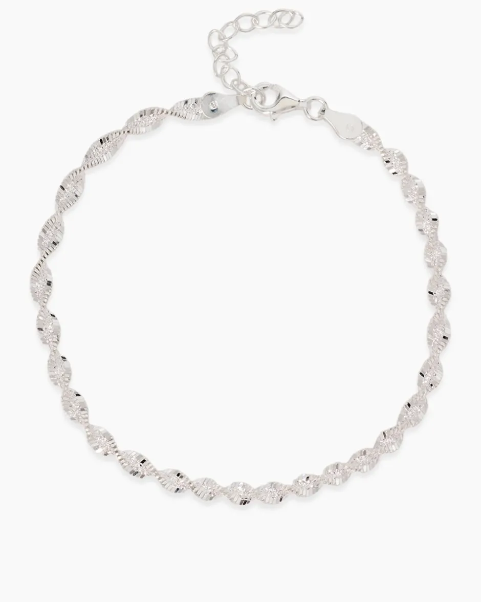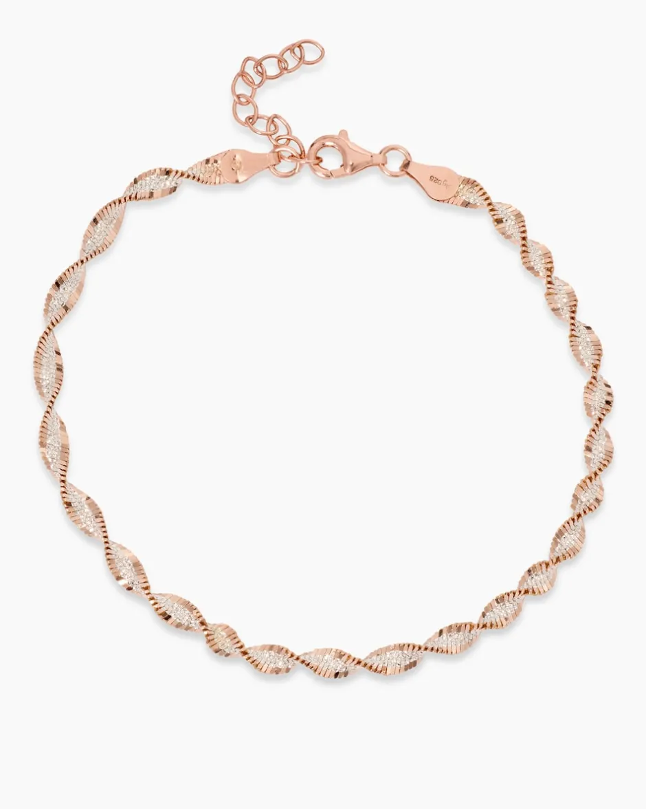 Das raffinierte Heringbone-Design glitzert und schimmert bei jeder Ihrer Bewegungen und unterstreicht stilvoll Ihre Gesten. Verschlossen wird das edle Accessoire mit einem sicherem Karabiner. Eine wundervolle Ergänzung zu angesagter Fashion oder auch eleganter Abendgarderobe.