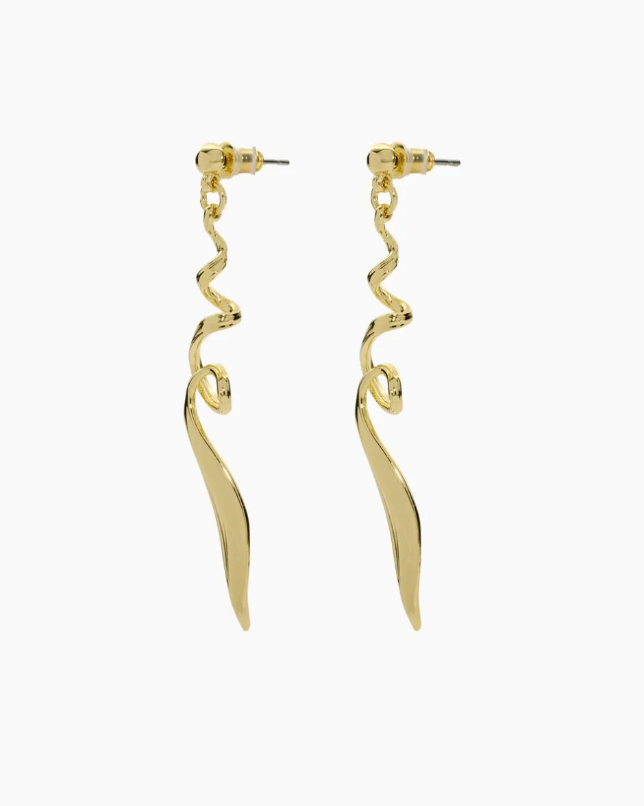 Die Ohrstecker aus hochglanzpoliertem Messing stehen Ihnen in der sonnenwarmen Gelbgold- oder der cool-eleganten Platin-Optik zur Verfügung. Das stylische Accessoire besteht aus einer Stecksicherung mit Silikoneinlage. Daran beweglich befestigt ist ein langes, in sich verdrehtes Element, das bei jeder Bewegung anmutig mitschwingt und einen langen Hals zaubert. So aufregend kann Modeschmuck sein.