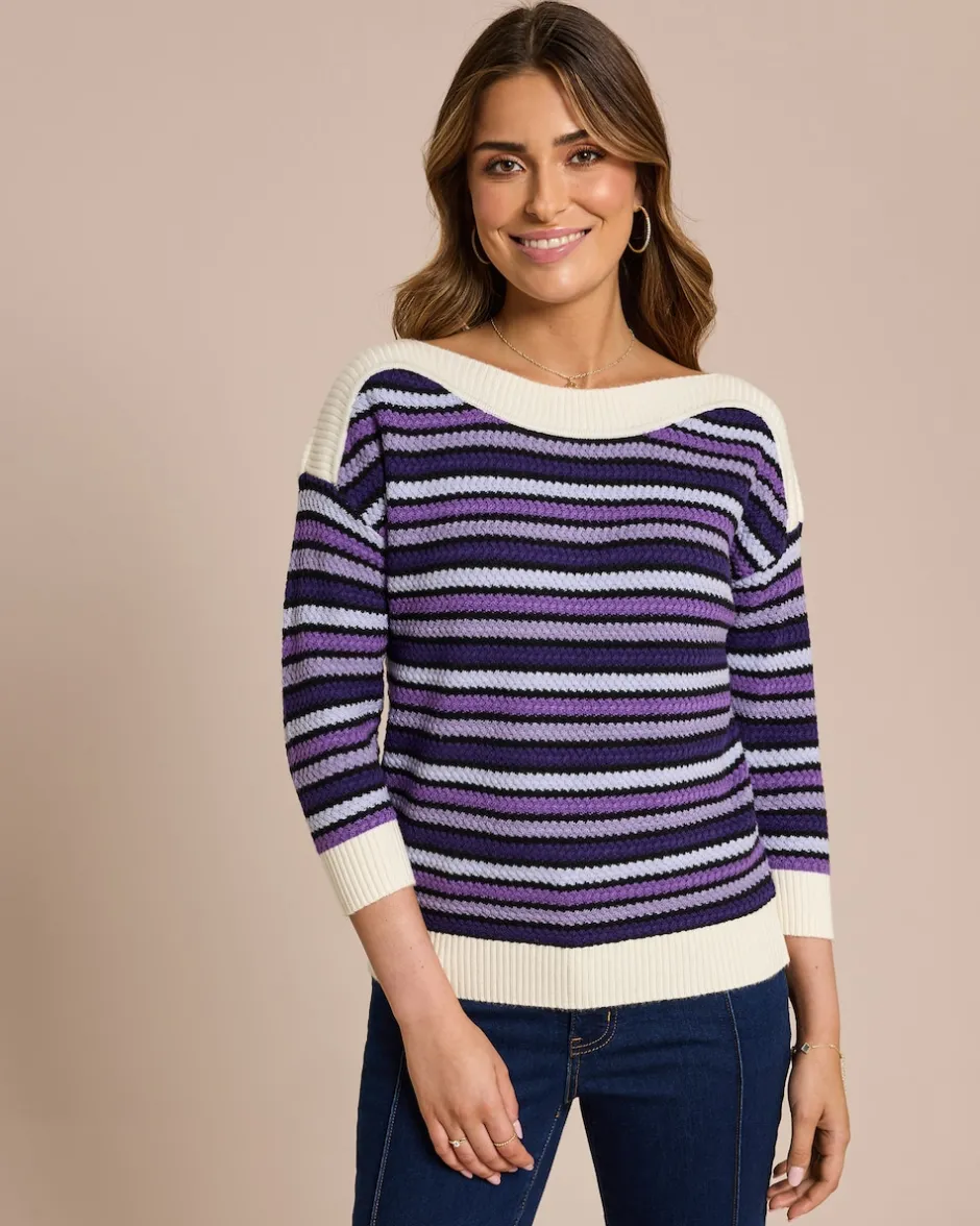 Gestreifter Pullover mit U-Boot-Ausschnitt