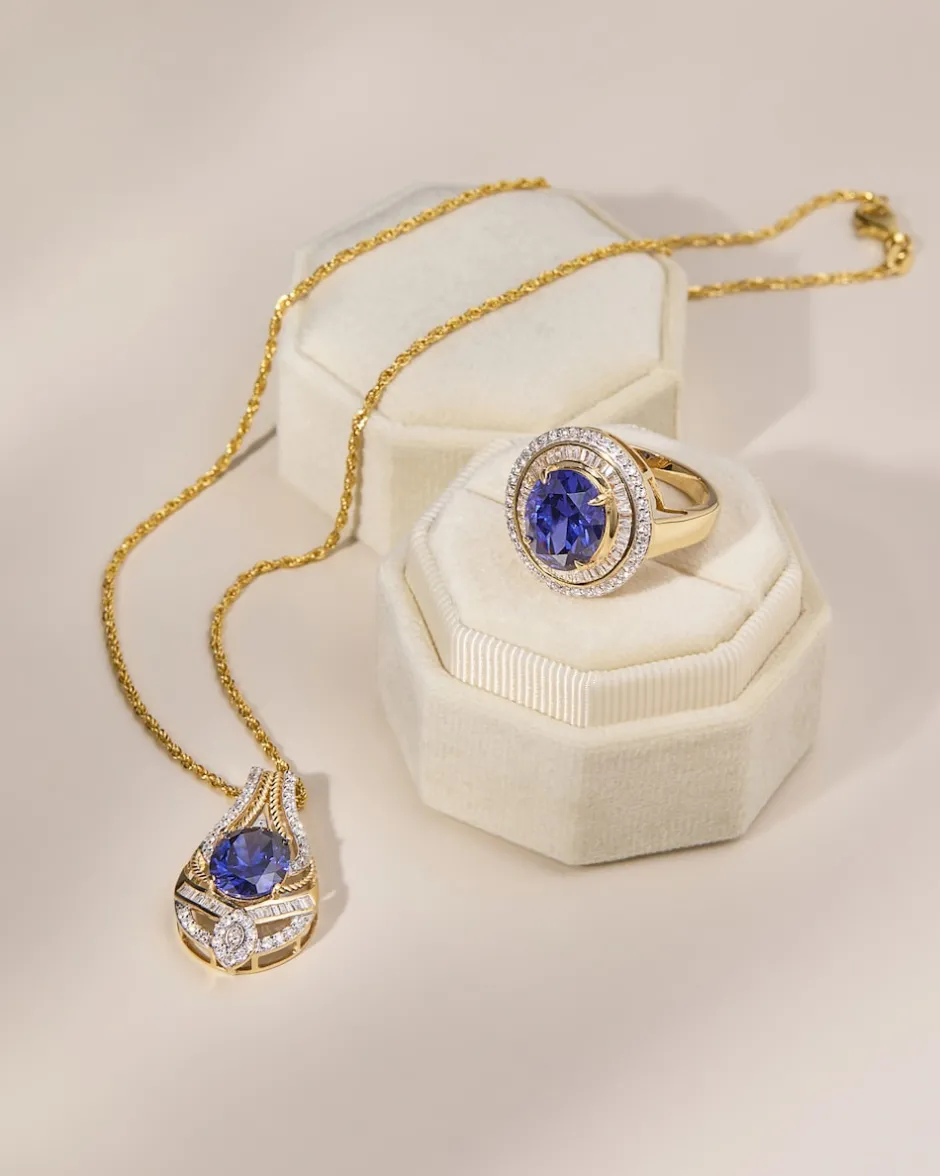 | Edelsteine: | 1x „Star of Africa“ Tansanit AAAAA, blau 42x Brillant, weiß 50x Diamant, weiß alle Edelsteine zus. mind. 5,30 ct | |