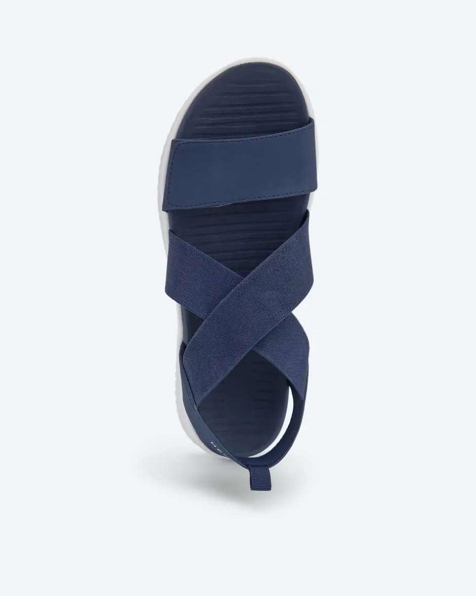 Entdecken Sie die Eleganz unserer Sandale im Riemen-Design. Mit gekreuzten Elastikbändern und einem breiten Riemen mit Klettverschluss vorne bietet diese Sandale eine bequeme, flexible Passform. Die Innensohle in Komfortweite ist gepolstert, um zusätzlichen Tragekomfort zu gewährleisten. Ein Fersenriemen mit Logo-Print und Anziehlasche rundet das stilvolle Design ab. Diese vielseitige Sandale lässt sich mühelos zu verschiedenen Outfits kombinieren: Ob mit einer luftigen Sommerhose für einen entspannten Nachmittag oder einem eleganten Kleid für einen Abend unter freiem Himmel. Schlüpfen Sie in unsere Sandale im Riemen-Design und erleben Sie den perfekten Mix aus Komfort und Stil.