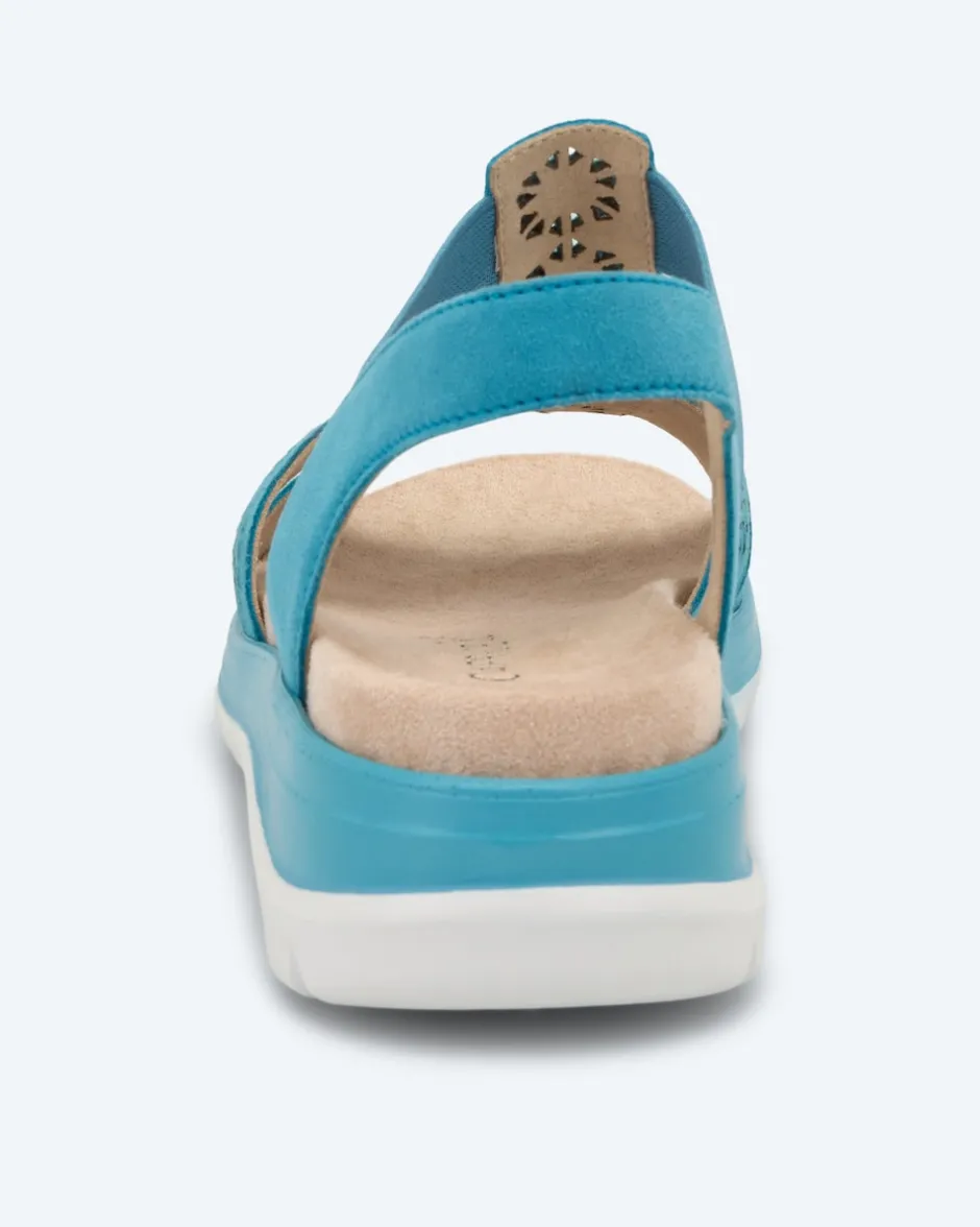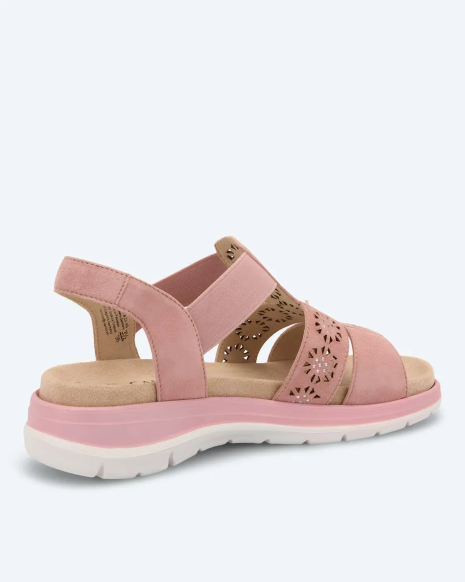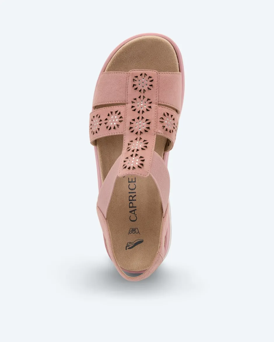 Entdecken Sie die Sommer-Trends mit unserer modischen Sandale. Das florale Laser-Cut-Muster und der Strassbesatz verleihen ihr ein zauberhaftes Aussehen, das Ihr Outfit zum Hingucker macht. Die bequeme Weichschaum-Innensohle und das austauschbare Fußbett, waschbar bei 30 Grad, garantieren zudem höchsten Komfort. Der Elastikriemen ermöglicht ein einfaches An- und Ausziehen ohne zusätzliches Öffnen. Diese Sandale lässt sich hervorragend zu Sommerkleidern oder lässigen Jeans kombinieren, perfekt für einen entspannten Tag im Park oder einen sommerlichen Stadtbummel. Lassen Sie Ihre Füße in unseren modischen Sandalen strahlen.