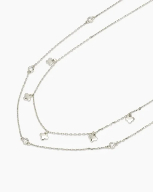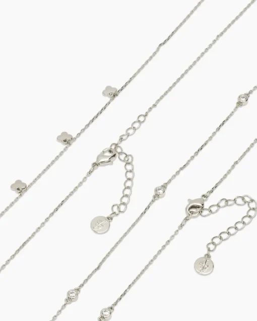 Zwei feminine Colliers mit Zirkonia-Einhängern und Kleeblättern