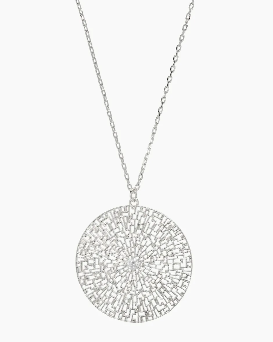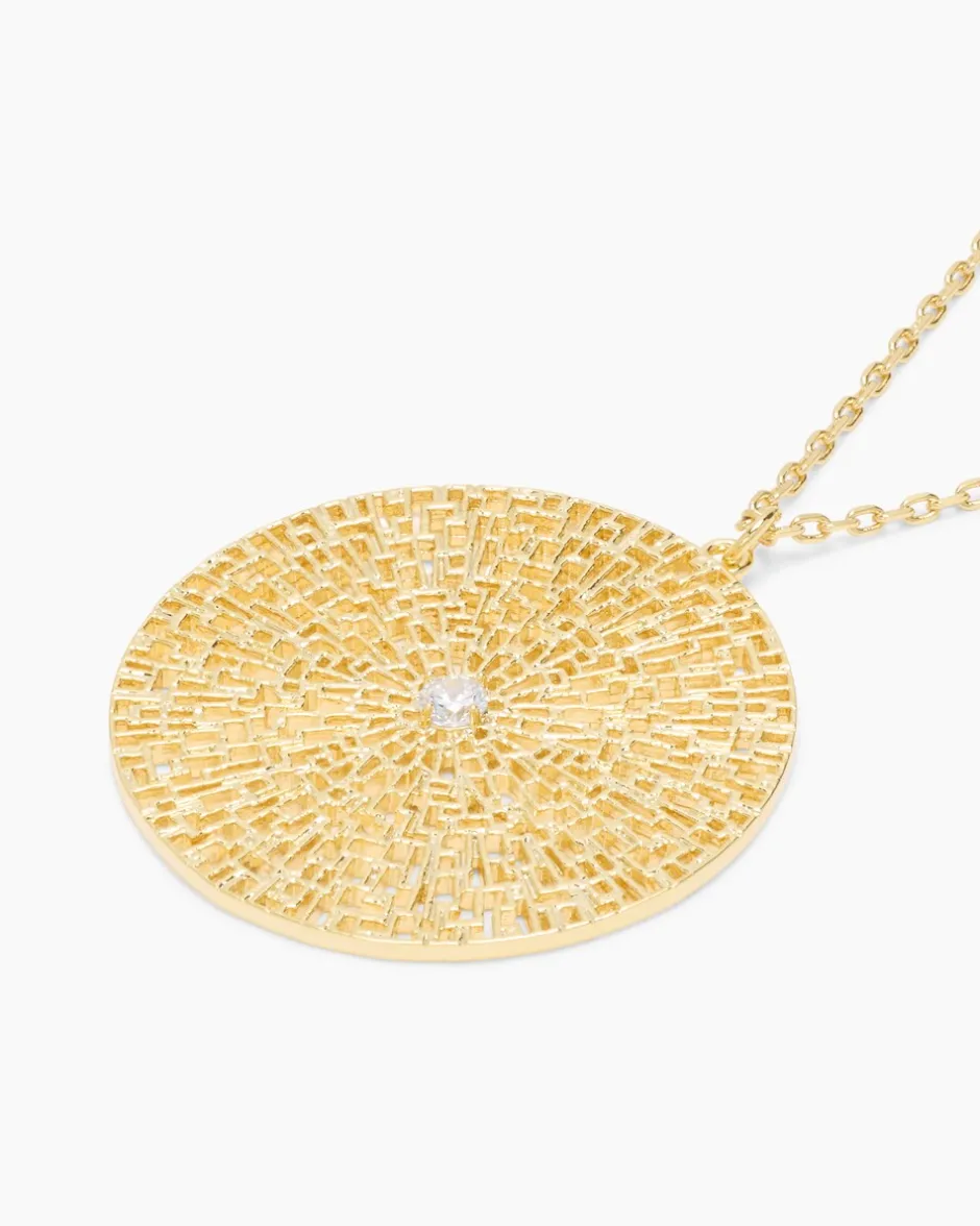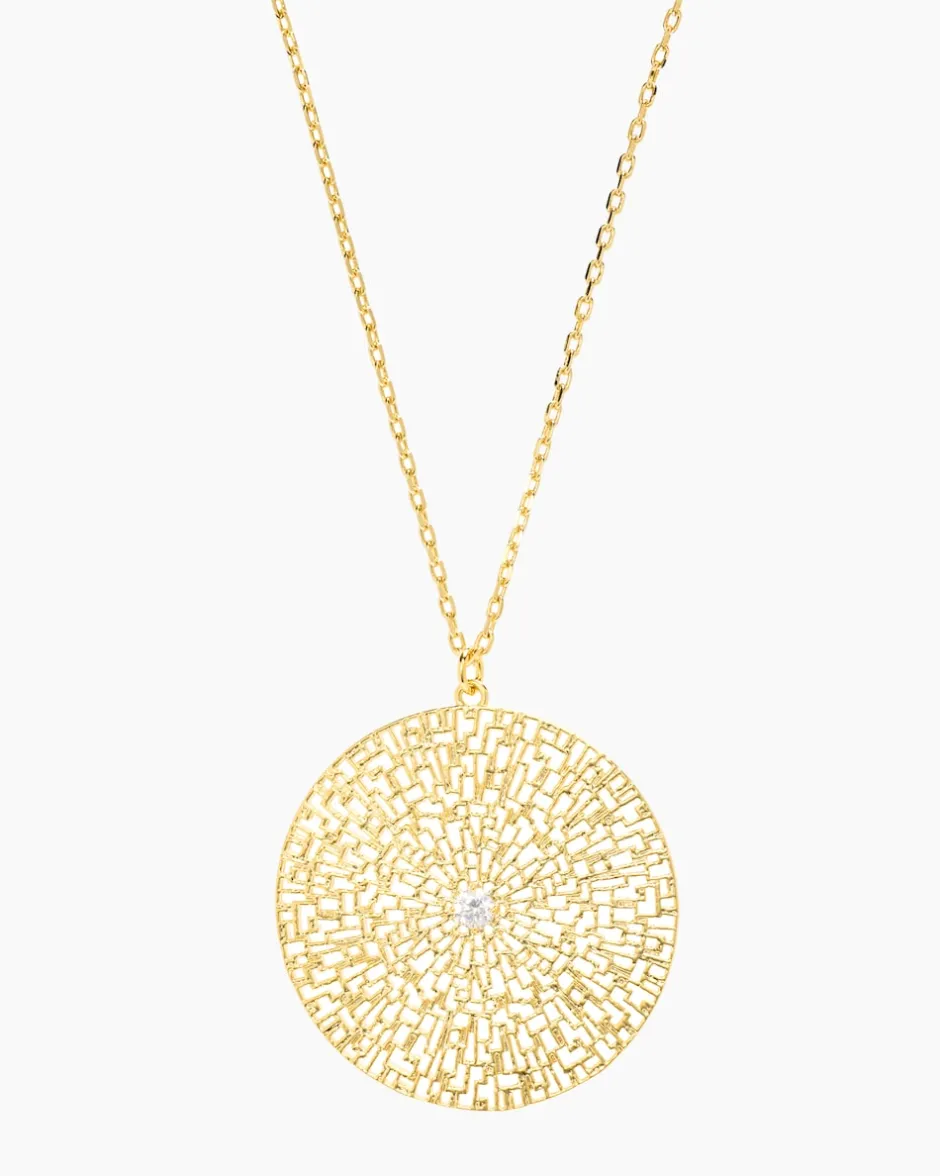Mit diesem vielseitigen Hingucker-Schmuck wird Ihr Outfit komplett. Im Zentrum des zweiteiligen Sets steht der fünf Zentimeter große, filigran durchbrochene Anhänger, aus dessen Mitte ein weißer Zirkonia-Stein funkelt. Teil des Angebots ist eine rund 70 Zentimeter lange Kette, die perfekt zu Ihrem neuen Anhänger passt. Das elegante Ensemble besteht aus Messing und kann wahlweise mit warm glänzender Gelbvergoldung oder kühl eleganter Weißgold-Optik bestellt werden. Der letzte Schliff für Ihren Style, aus der Kollektion von Helena Vera.
