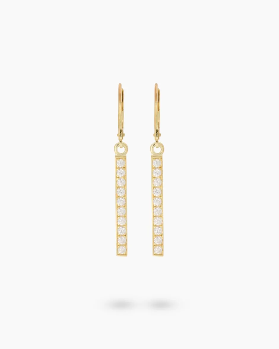 Die Ohrhänger aus hochglanzpoliertem Gelbgold 585 sind von betörender Schönheit. An einer Klappbrisur ist ein längliches Element beweglich befestigt, das mit zehn weißen Brillanten verziert ist. Die runden Brillanten in SI1-Reinheit sind von guter Schliffqualität und im Brillantschliff veredelt. Im Pavé gefasst faszinieren sie mit einem Glitzern, das Ihre Augen zum Strahlen bringt. Die fast 4 cm langen Ohrhänger schwingen bei jeder Ihrer Bewegungen mit und betonen Ihren langen Hals. Luxuriöser Schmuck, der Ihre Schönheit zum Strahlen bringt.