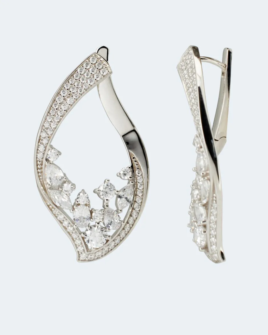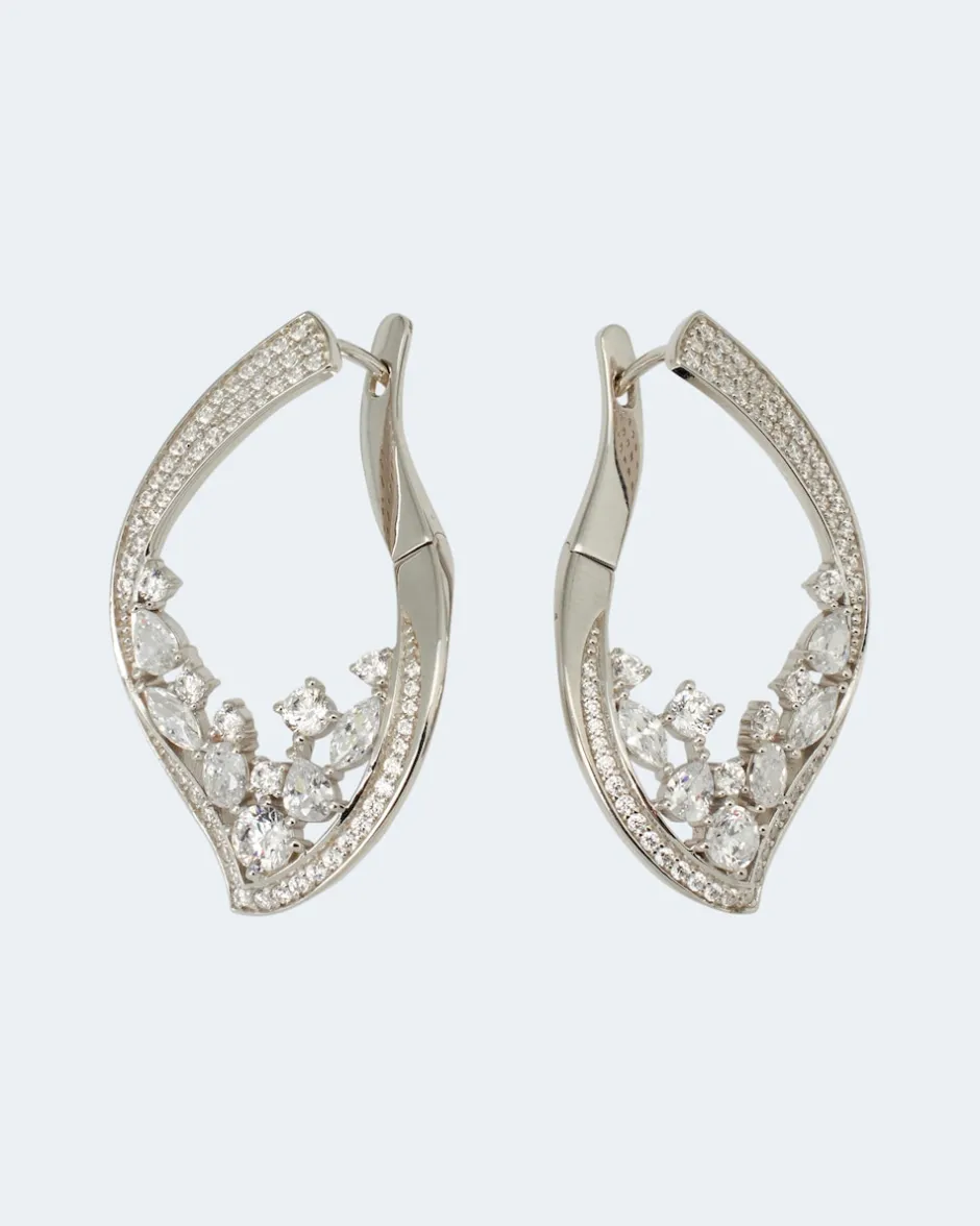 Der Ohrschmuck interpretiert den Klassiker Creole in moderner, spitz zulaufender Form. Besetzt mit 138 weißen Zirkonia in unterschiedlichen Formen, Größen, Schliffen und Fassungen genießen Sie strahlend-schönes Funkeln bei jeder Kopfbewegung. Die Silber-Creolen im Weißgold-Look sind mit einem praktischen Klappverschluss ausgestattet. Schmücken Sie sich, wann immer Sie wollen, mit diesen hinreißenden Creolen.