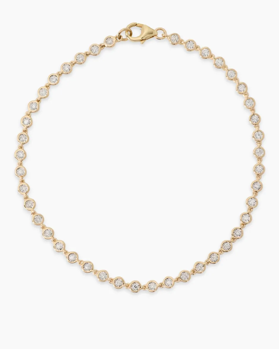 Das Diamond Collection Armband aus hochglanzpoliertem 375er Gelb- oder Weißgold ist der pure Luxus. Es ist je nach Länge mit 37 oder 42 runden Diamanten ausgefasst. Die Edelstein in der Reinheit P1 sind von guter Schliffqualität. Veredelt im Brillantschliff glitzern und funkeln Sie bei jeder Ihrer Bewegungen. Als Verschluss dient ein unkomplizierter Karabiner. So sitzt Ihre neue Preziose sicher an Ihrem Handgelenk. Stilvoller Schmuck für Ladies mit Klasse.