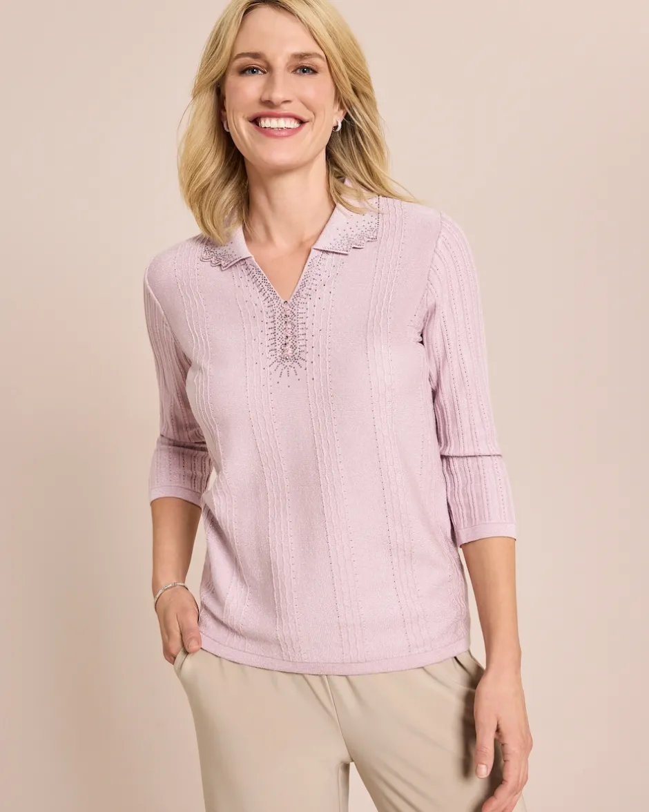 Strickpullover mit Polokragen und Strassdekor