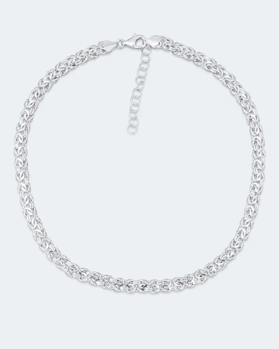 Bei einer Königskette sind die einzelnen Ringe raffiniert ineinander verwoben, sodass eine kompakte Kette mit einer stattlichen Breite entsteht. Trotz ihrer Kompaktheit legt sich die Kette flexibel um Ihren Hals.