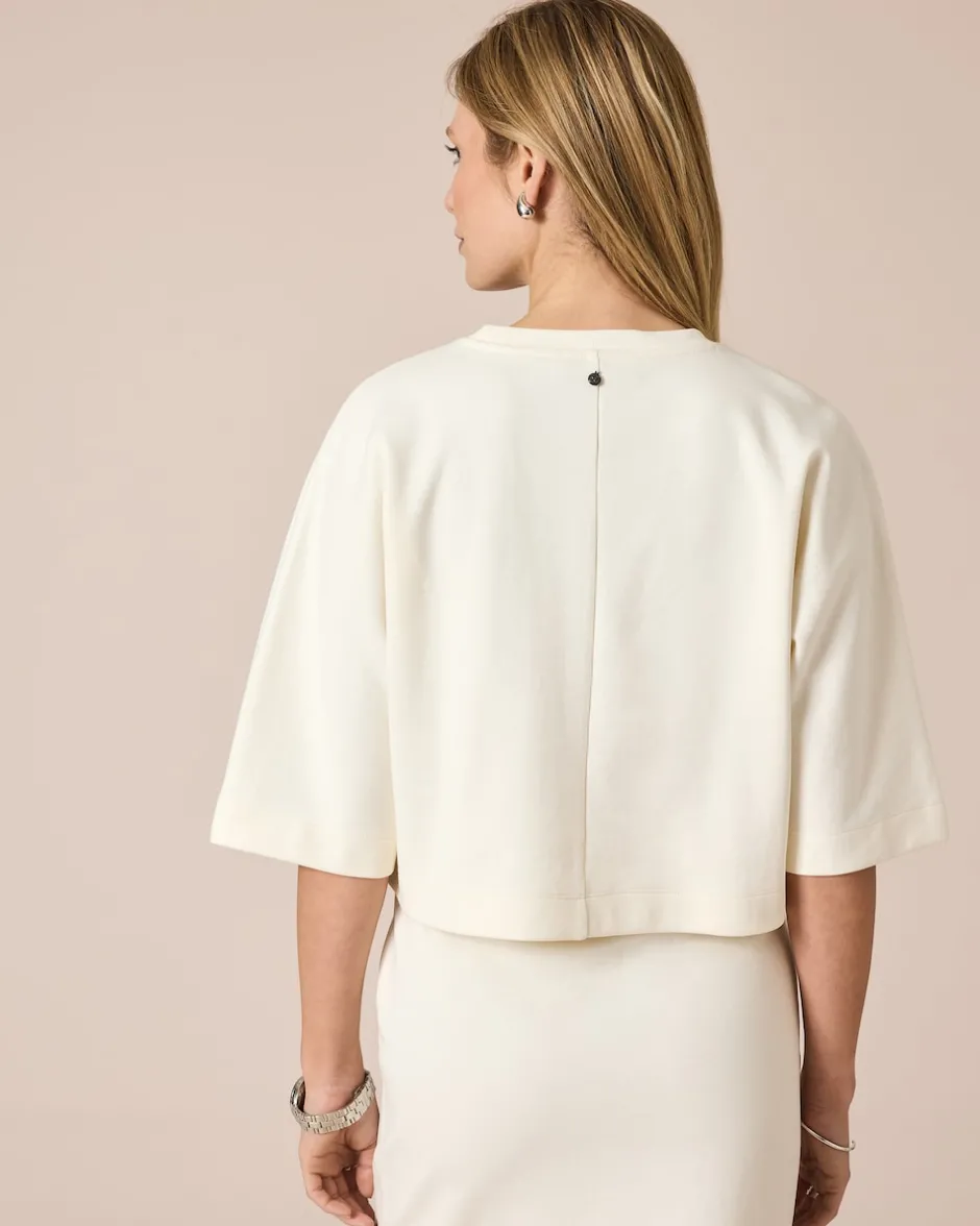 Entdecken Sie modische Raffinesse im Understatement-Look mit unserem Pullover im lässigen Casual-Style. Die feine Sweat-Qualität, ein halsnaher Rundhalsausschnitt und der weite Halbarm setzen entspannte Akzente. Eine Mittelnaht auf der Rückseite und die Logoplatte im Nacken unterstreichen das Design. Gefertigt aus hochwertigem Baumwoll-Stretch, bietet dieser Pullover eine bequeme, luftige Weite. Kombinieren Sie ihn mit einer Jeans für einen coolen Alltagslook oder mit einer eleganten Hose für einen legeren Büro-Look. Entspannen Sie sich in unserem komfortablen Pullover im Casual-Style.