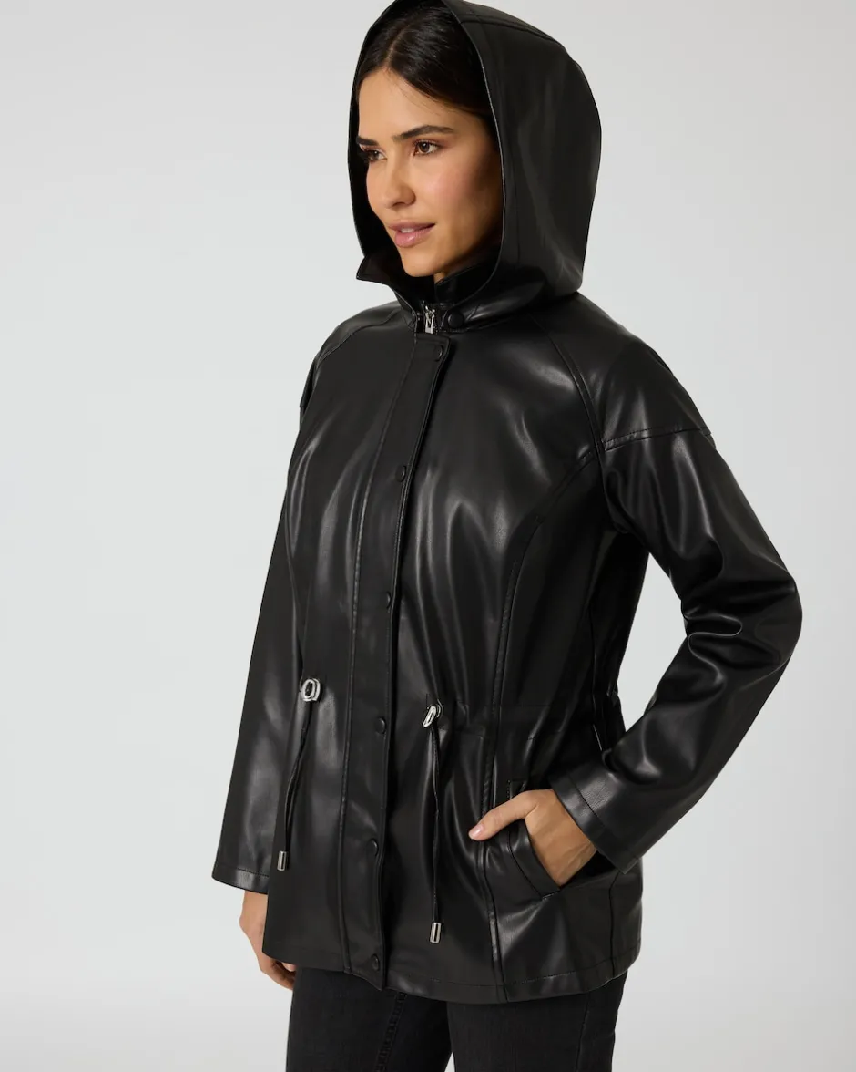 Lederimitat und Kunstleder liegen voll im Trend, deswegen werden Sie diesen lässigen Judith Williams Parka bestimmt oft tragen. Das schicke Modell in Unischwarz hat eine abnehmbare Kapuze und betont durch den regulierbaren Tunnelzug in der Taille gekonnt die Körpermitte. Ausgestattet mit Druckknopf- und Reißverschluss sowie trageangenehmem Innenfutter – so bleibt die eisige Luft draußen und Sie haben es immer kuschelig warm.