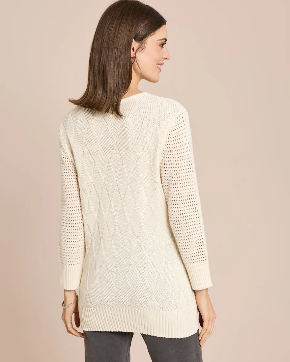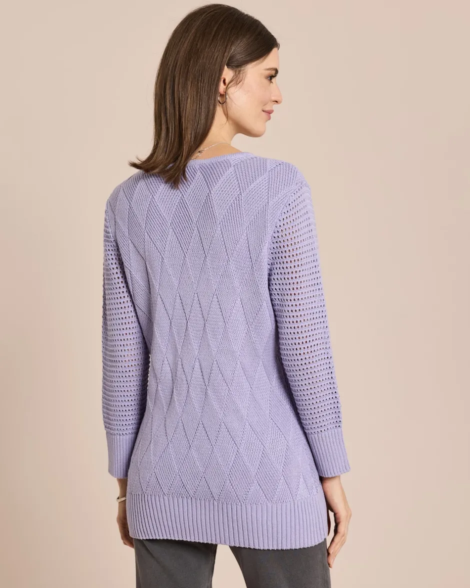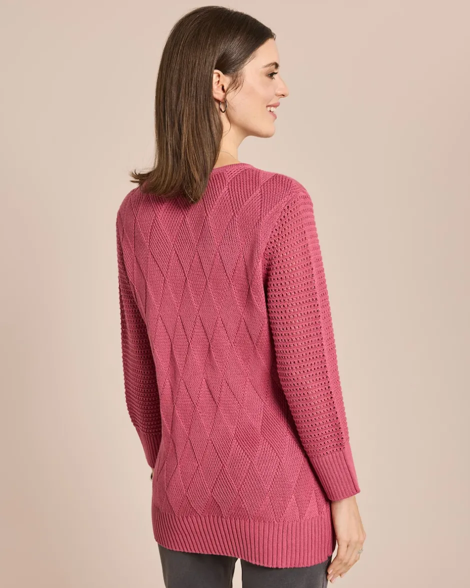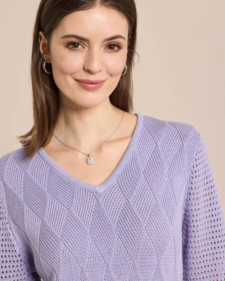 Stilvoller Pullover mit Ajour-Ärmel und Karo-Struktur