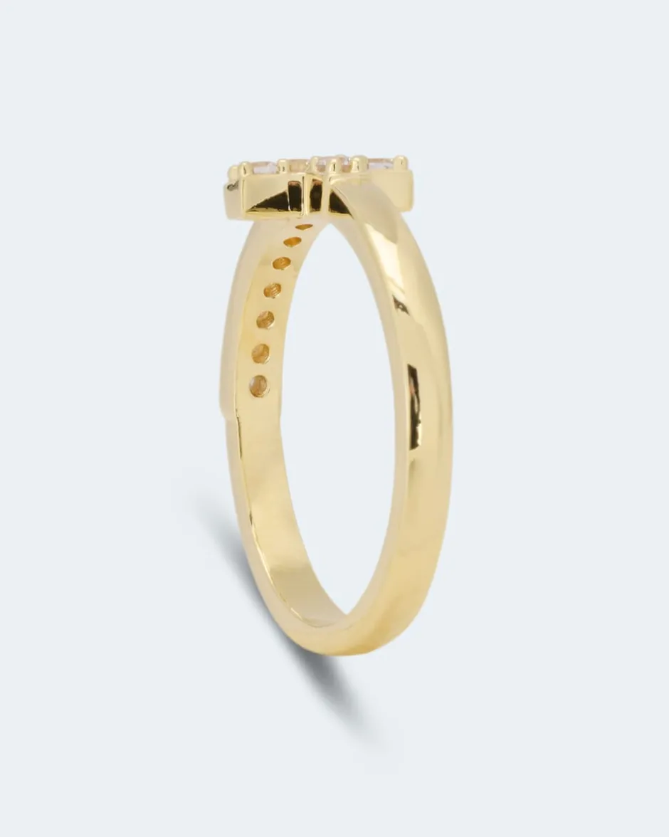 Als trendbewusste Schmuckträgerin werden Sie diesen Ring lieben: In der Mitte sitzt ein stylishes Kreuz-Symbol, ausgefasst mit glamourös funkelnden Zirkonia-Steinen. Der reizende Ring kann wahlweise mit gelbvergoldetem oder rhodiniertem Finish bestellt werden und passt so bestimmt auch in Ihre Modeschmuck-Sammlung. Ein funkelndes Accessoire für alle Fashion-Ladies.