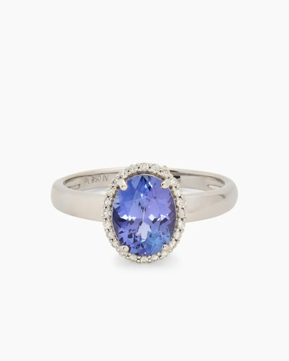 Kühle Eleganz de Luxe: Platinring mit Tansanit & Brillanten