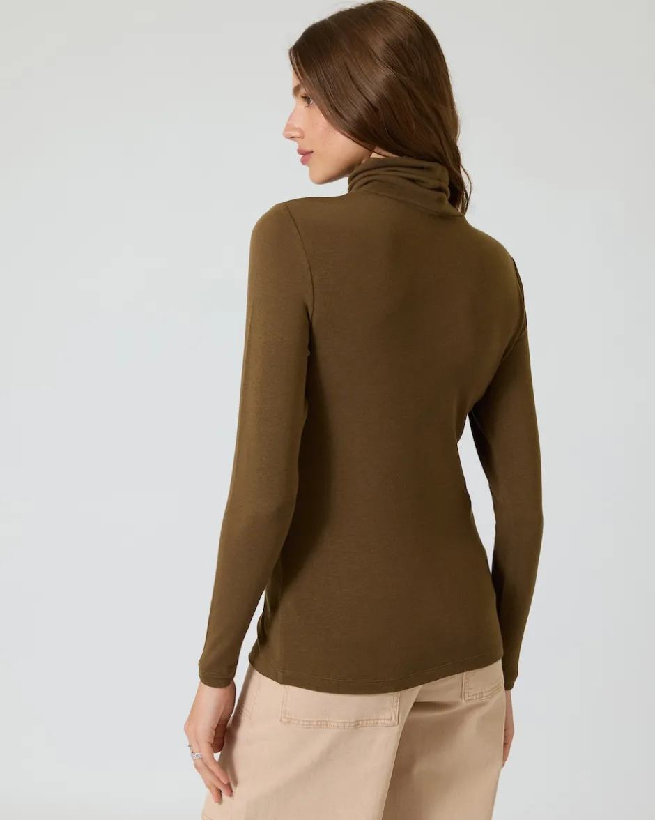 Die Rollkragenshirts sind unifarben und leicht tailliert geschnitten. Sie haben lange Ärmel und sind oberhalb des Saums mit einer kleinen Logo-Plakette verziert. Die Shirt begeistern außerdem mit herrlich softem Material, das sich weich an Ihre Haut schmiegt. Rollkragenshirts können solo getragen werden oder unter einem Cardigan oder Blazer. Und an richtig kalten Tagen können Sie sie auch als Unterhemd nutzen.