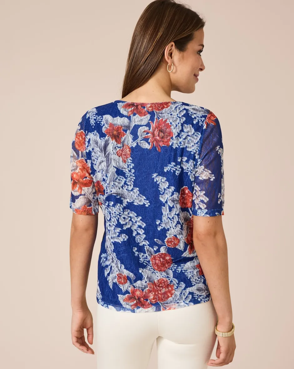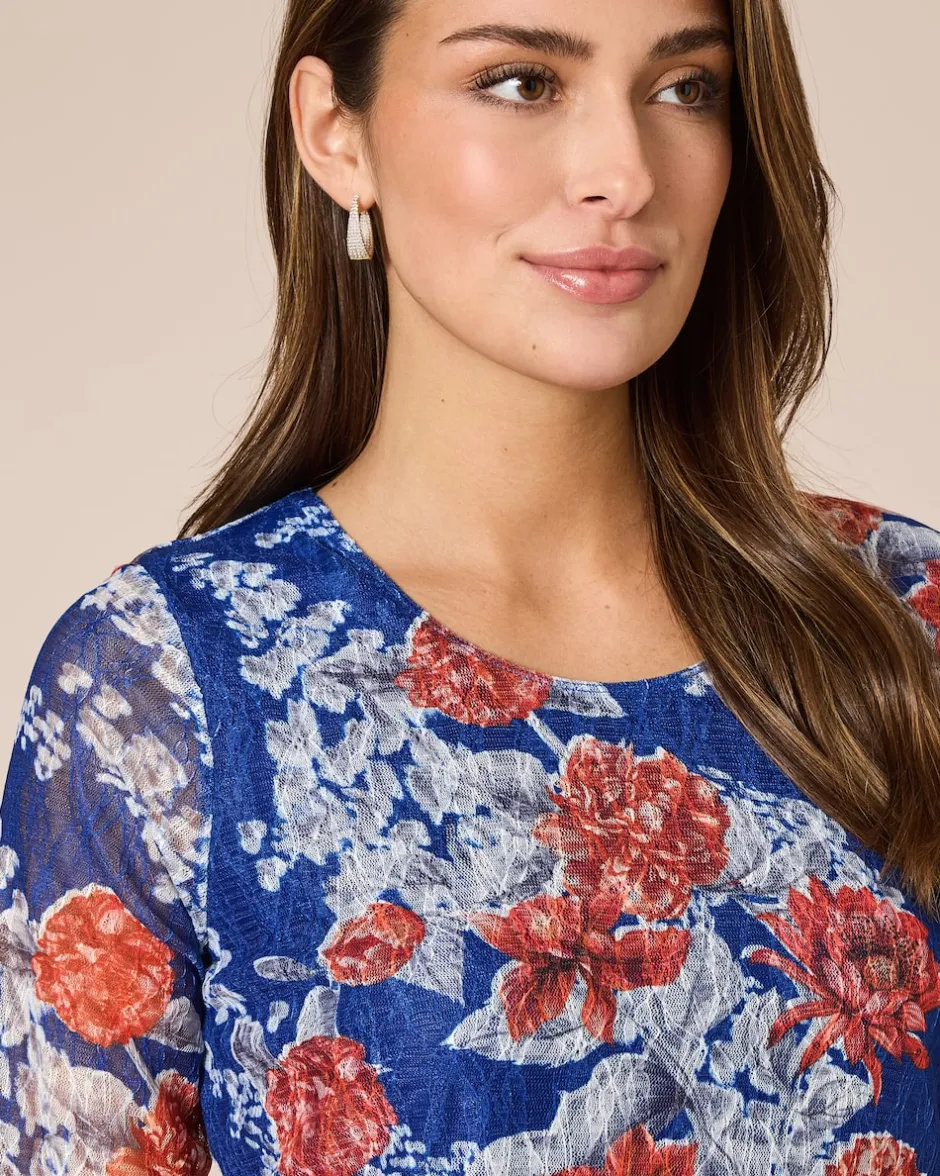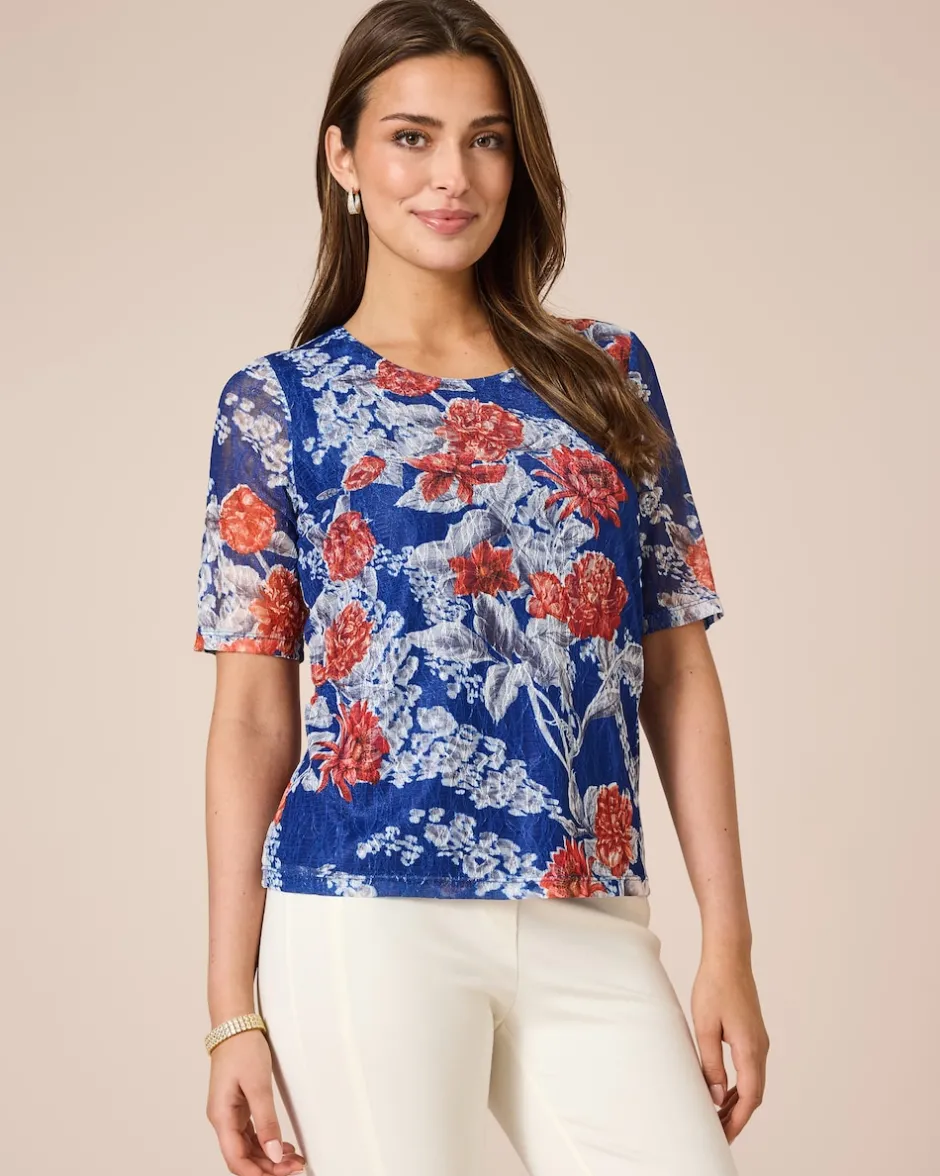 Lassen Sie sich verführen von diesem wunderschönen Shirt im typischen Alfredo Pauly Look – das heißt verspielt, romantisch und sehr feminin. Die obere Lage ist aus feiner Spitze gefertigt und allover mit romantischen Blütenmotiven bedruckt. Die untere Lage ist ein blickdichtes Jersey-Futter, das zugleich für besten Tragekomfort sorgt. Sichern Sie sich dieses Gute-Laune-Shirt für Ihre modische Sommersaison.