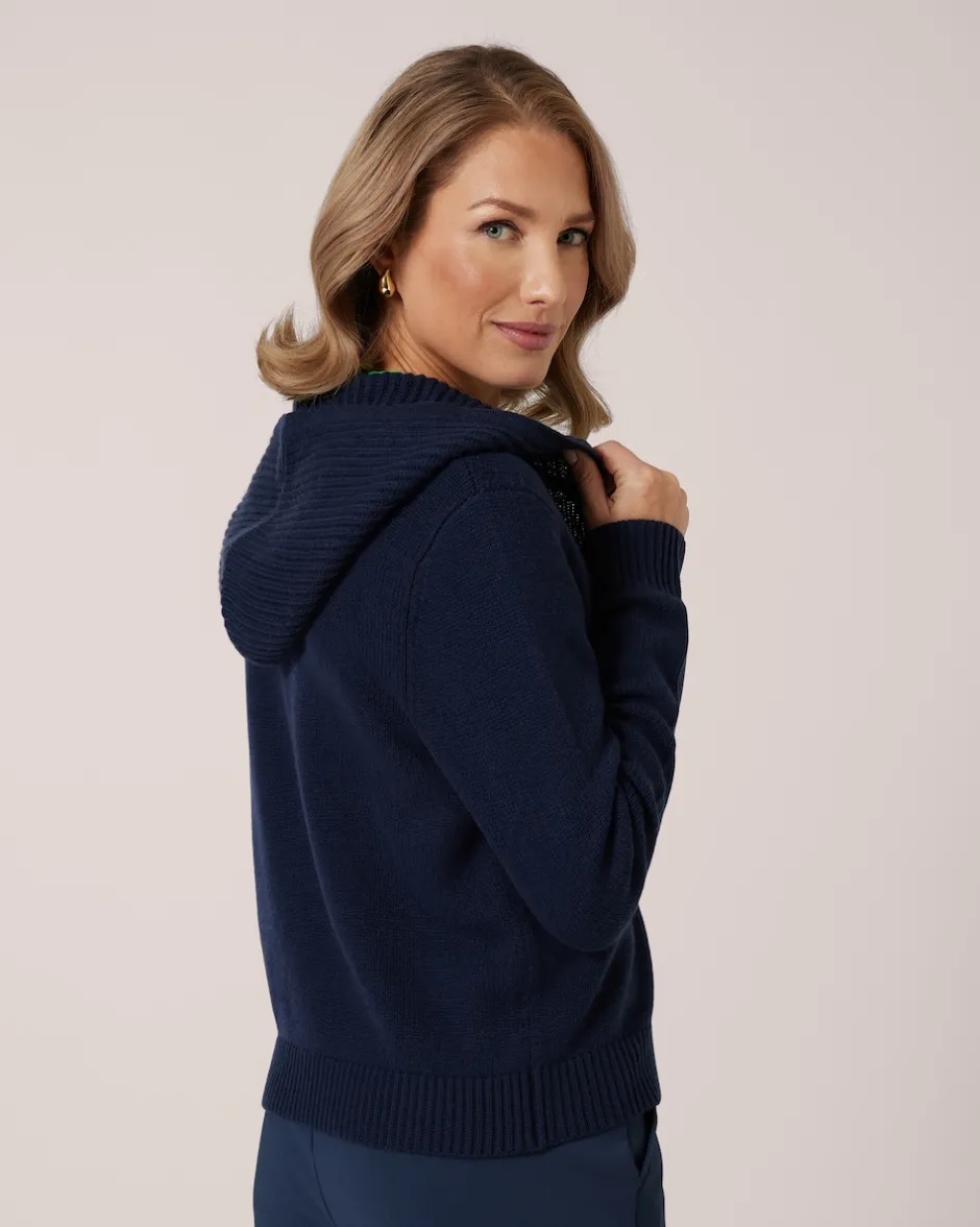 Kaschmir meets Wolle, das Ergebnis ist ein angenehm weicher und wärmender Material-Mix – perfekt für Strickjacken. Das Modell aus der Modelinie von THOM by Thomas Rath hat eine Kapuze mit Quer-Rippen, die sich in Kontrastoptik absetzt. Geschlossen wird die Jacke mit einem Zweiwegereißverschluss aus Metall. Klassische Rippbündchen machen das sportive Design lässig komplett. Tragen Sie die Strickwear als Jackenersatz im Büro, in der Freizeit oder gemütlich zu Hause – sie passt einfach immer. Ein THOM-Logo am Zipper wird zum dezenten Markenzeichen.