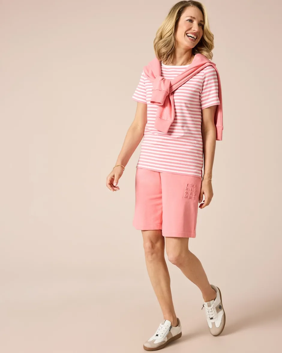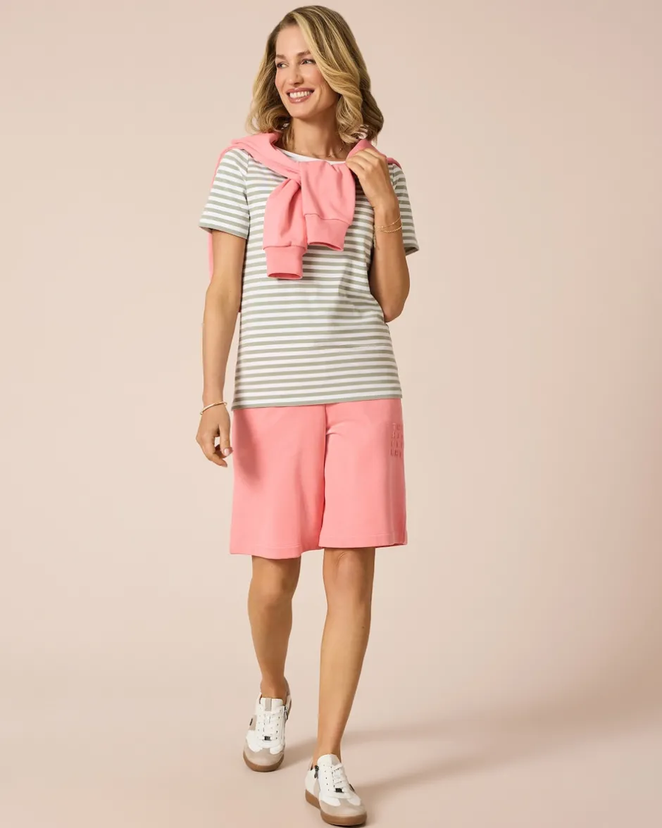 Liebesgrüße aus dem Kreativ-Atelier von Thomas Rath erreichen Sie mit diesen lässigen Shorts im Unidesign. Ausgestattet mit einem elastischen Bund samt Bindeband – so sitzt die kurze Hose perfekt auf jeder Hüfte. Geschneidert ist der Hoodie aus einem atmungsaktiven und trageangenehmen Baumwoll-Mix. Die Liebesbotschaft „THOM WITH LOVE“ findet sich seitlich am linken Bein in einer edlen, tonalen Prägung. Zusammen mit dem Sweat Hoodie (475002) im selben Design und derselben Farbauswahl haben Sie ein komplettes Casual Outfit für Freizeit, Urlaub oder einfach für jeden relaxten (Sommer-)Tag.