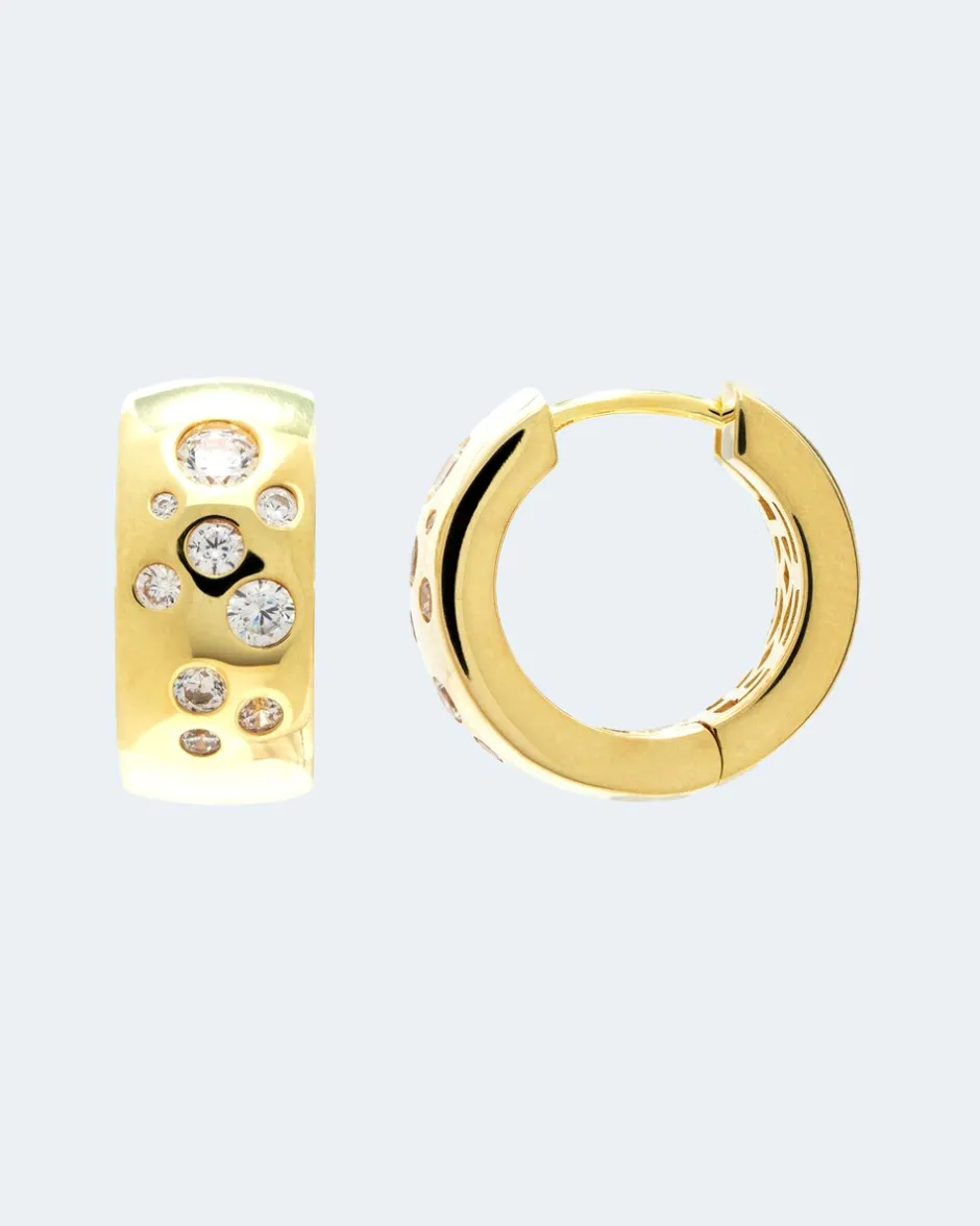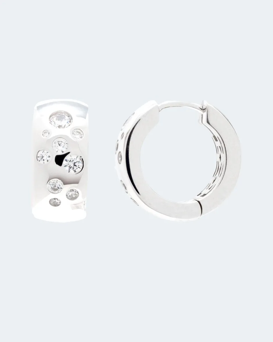 Die klassischen Klappcreolen sind mit je 9 Zirkonia in verschiedenen Größen ausgefasst – funkelnde Hingucker für Ihre Halspartie.