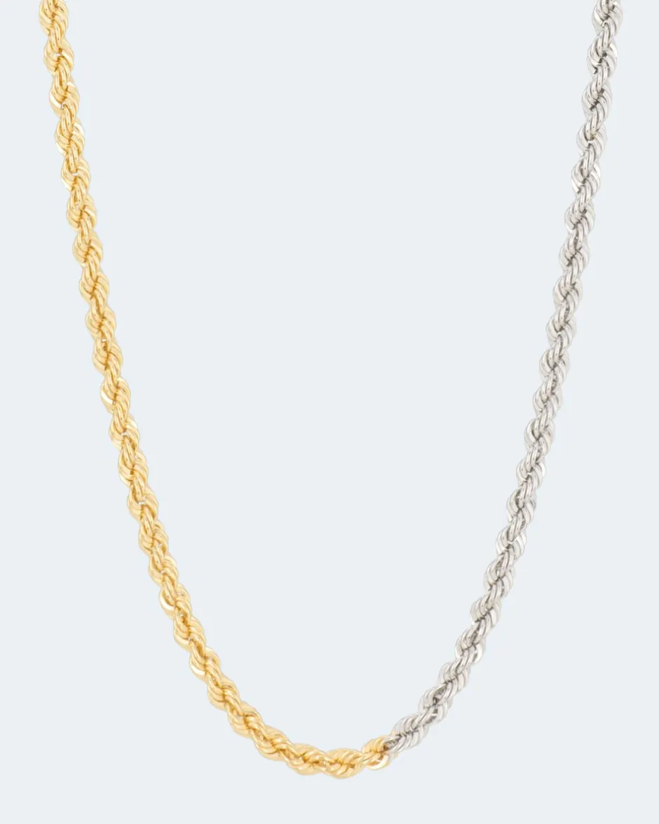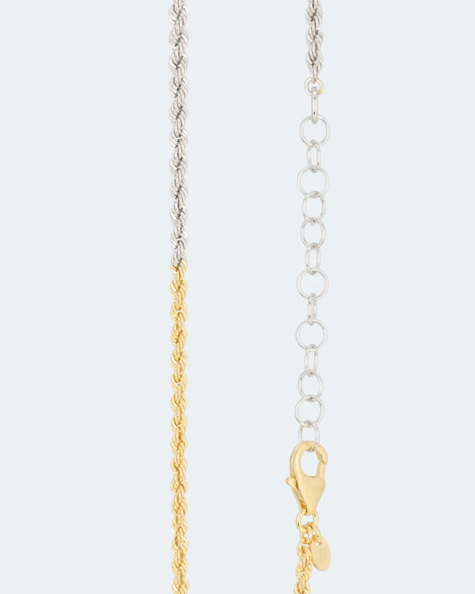Gönnen Sie sich eine vielseitige Kette aus feinem Sterlingsilber im dekorativen Kordel-Design. Die La Barca Kette von ALEKS STERNEN ist auch ideal für alle Arten von Anhängern geeignet. Das Besondere an Ihrer Machart ist die Bicolor-Optik: Eine Seite ist gelbvergoldet, die andere rhodiniert. Als Verschluss dient ein kleiner Karabinerhaken, der sich gut in das Kordel-Design einfügt. In der Länge Ihrer Wahl schmiegt sich der Halsschmuck attraktiv an Ihr Dekolleté.