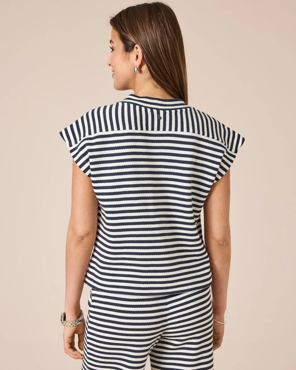 Streifen-Looks gehen immer und sind gerade in der Sommersaison beliebte Klassiker. Der Pullover von THOM by Thomas Rath besticht durch seine hochwertige, weiche Baumwollqualität mit Webstreifen. Der Schnitt ist modisch leger mit angeschnittenen Ärmeln, leicht verkürzter Länge und kontrastgestreifter Rückenpasse. Lust auf noch mehr Marine-Feeling? Für die perfekte Freizeitkombi finden sie die passende Hose unter der Bestellnummer 474911.