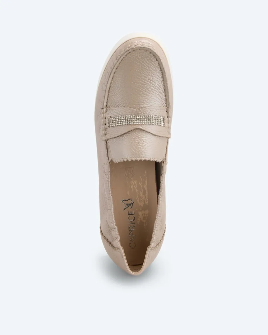 Sie sehen dem Mokassin von Caprice seine Qualität auf den ersten Blick an. Das weiche Hirschleder wirkt nicht nur elegant, das hochwertige Material schmiegt sich auch an wie eine zweite Haut – einfach herrlich. Dazu kommt das Leder-Dekoband mit funkelnden Steinchen über dem Rist. Es ist eine wunderbare Zier für den handgenähten Schuh. Die inneren Werte des Schuhs sorgen für Ihren Komfort: die auswechselbare OnAir-Innensohle ebenso wie der elastische Schaftrand und die seitlichen Elastikeinsätze. Sie tragen maßgeblich zu dem hervorragenden Gehgefühl bei. Gönnen Sie sich dieses modische Allround-Talent zum Hineinschlüpfen und Wohlfühlen – exklusiv bei HSE.