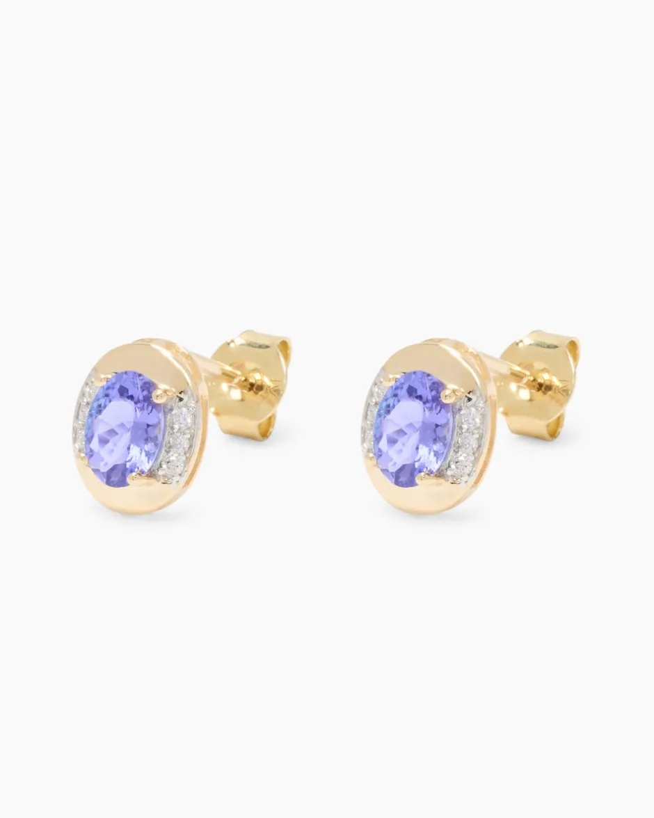 Gold-Ohrstecker mit schillerndem Tansanit & funkelnden Brillanten