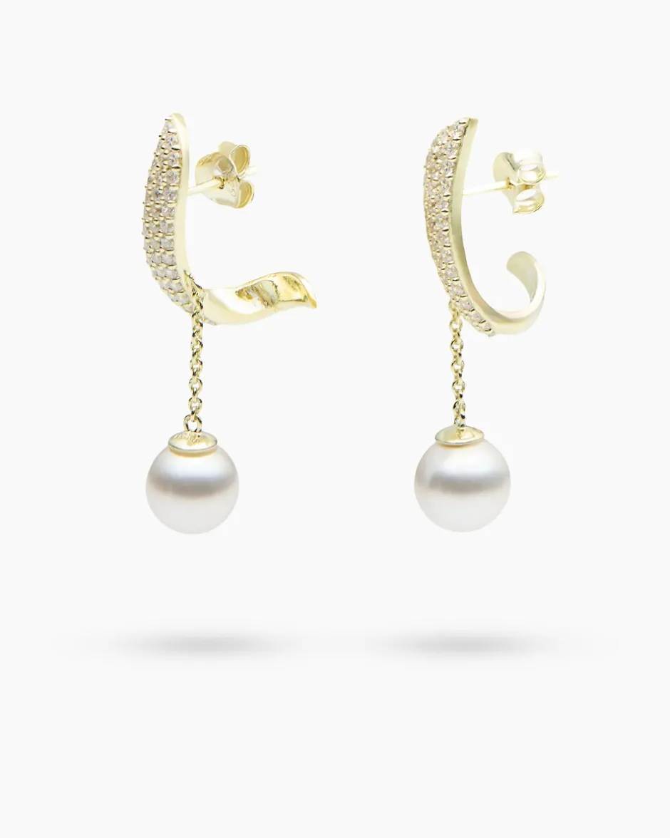 Zwei weiß schimmernde Perlen bewegen sich an zarten Ketten bei jeder Bewegung mit, wenn Sie die eleganten Ohrstecker aus dem Hause Pfeffinger tragen. Jede Perle ist mit einem geschwungenen Edelmetall-Element verbunden, das faszinierend an Ihrem Ohr blitzt. Für elegantes Funkeln und den gewissen Hauch von Glamour sorgt der Brillantschliff der 78 weißen Zirkonia, die auf den Ohrsteckern im Pavé gefasst sind. Das moderne und zeitlos elegante Design bereichert Ihr Looks und beschert Ihnen zwei zauberhaft schöne Eyecatcher.