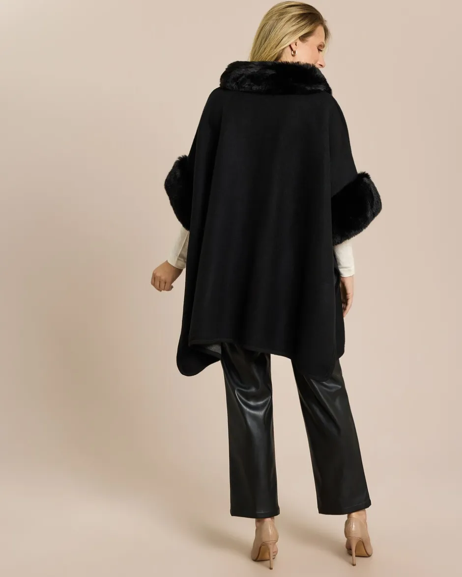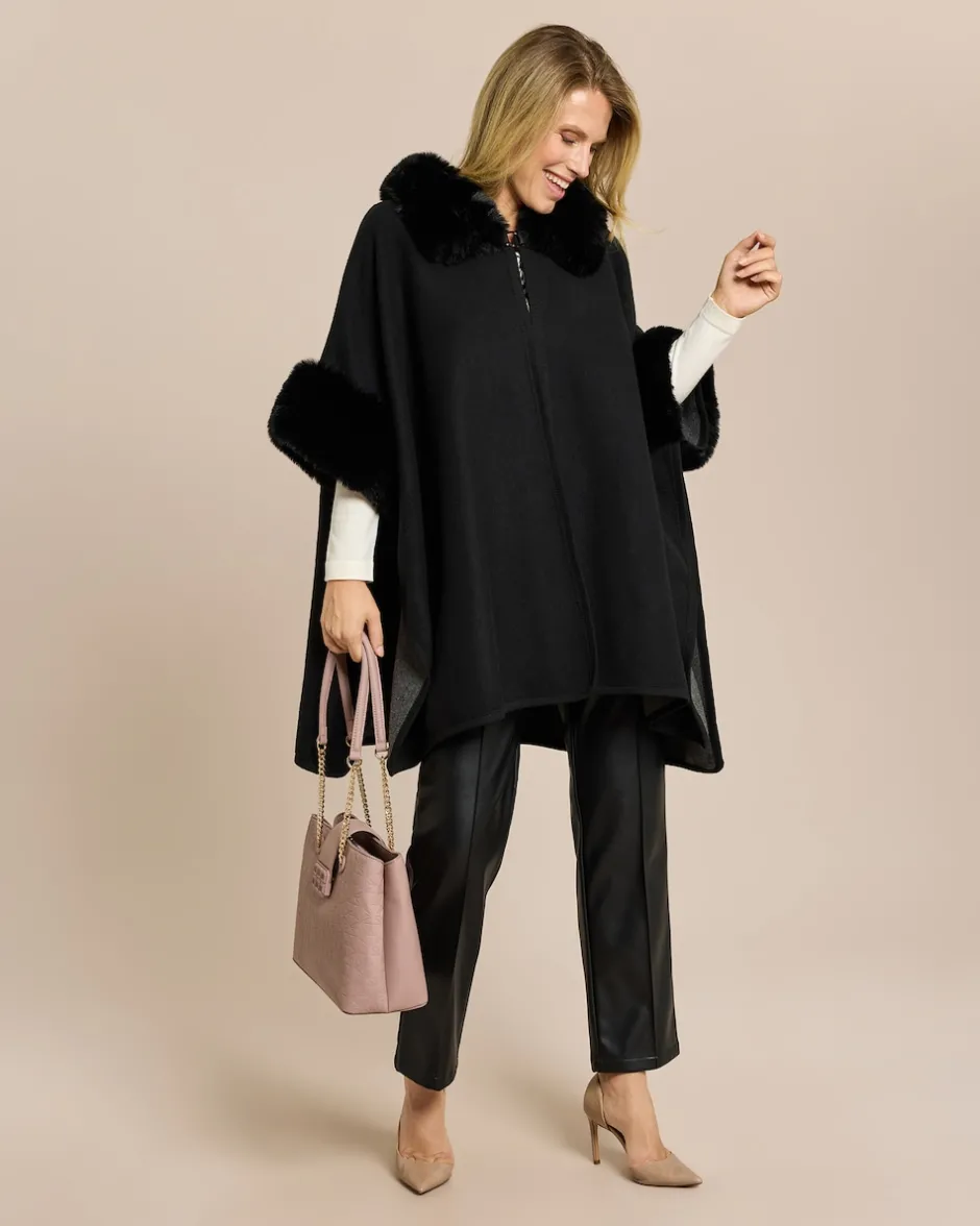 Luxuriöser Poncho mit edlem Webpelzbesatz