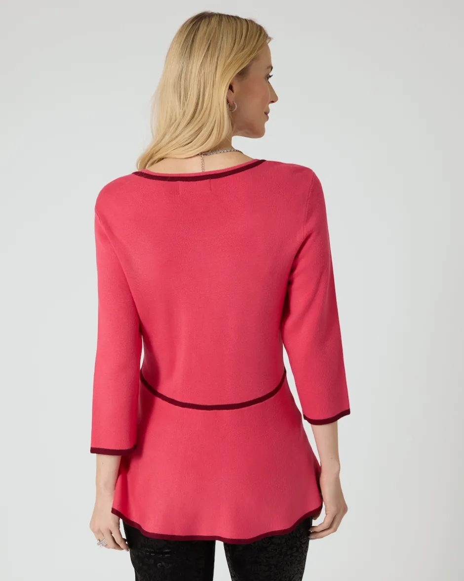 Lust auf ein bisschen Lady-Chic? Dieser reizende Feinstrickpullover verleiht jeder Kombi modische Eleganz. Die Schnittführung ist wunderbar feminin, mit taillierter Silhouette, weitem Rundhalsausschnitt und breitem Volant-Saum. Figurbetonende Kontraststreifen akzentuieren den Look gekonnt. Ihr neuer Pullover besteht aus einem feinen, farbbrillanten Viskose-Mix. Ein Fashion-Piece von Alfredo Pauly.