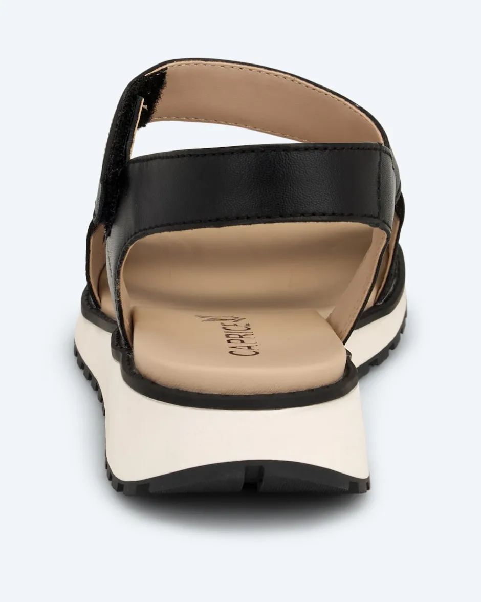 Unsere Sandale mit Elastiks ist eine modische Neuinterpretation des klassischen Sandalen-Designs. Die gekreuzten Bänder verleihen ihr einen modernen Look, während Flexibilität und ein einfacher Einstieg tollen Komfort bieten. Die bequeme Weichschaum-Innensohle bietet ein unvergleichliches Tragegefühl und der Klettriegel ermöglicht eine individuelle Anpassung. Ein Kontraststreifen an der Laufsohle rundet das Design mit einer sportlichen Note ab. Kombinieren Sie diese Sandale mit einer luftigen Sommerhose für einen gelungenen Tageslook oder mit einem eleganten Abendkleid für einen schicken Auftritt bei Nacht. Mit unserer Sandale erleben Sie Komfort und Stil in Perfektion.