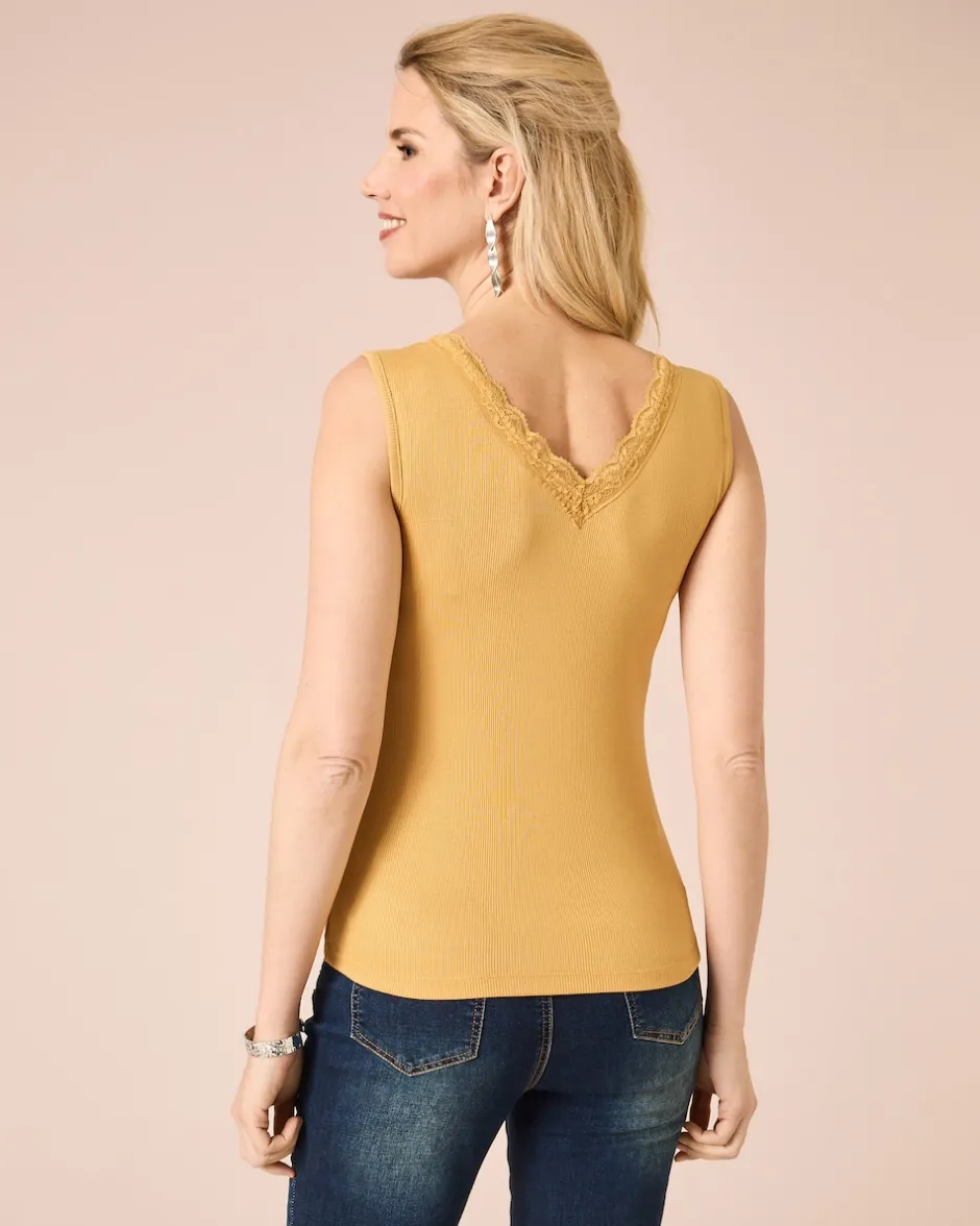 Wenn sich in Frühjahr und Sommer die Sonne wieder zeigt, wenn die Kleidung etwas lockerer und leichter werden darf, ist ein schickes Top perfekt. Besonders, wenn es wie dieses Modell von Maloo am V-Ausschnitt auf Vorder- und Rückseite mit verführerischer Spitze besetzt ist. Gönnen Sie sich das luftige Vergnügen eines ärmellosen Oberteils – und genießen Sie den femininen Look. Dank des relativ breit gehaltenen Schulterbereichs sind Sie mit diesem Top auch richtig angezogen. Sie können es also problemlos solo tragen.