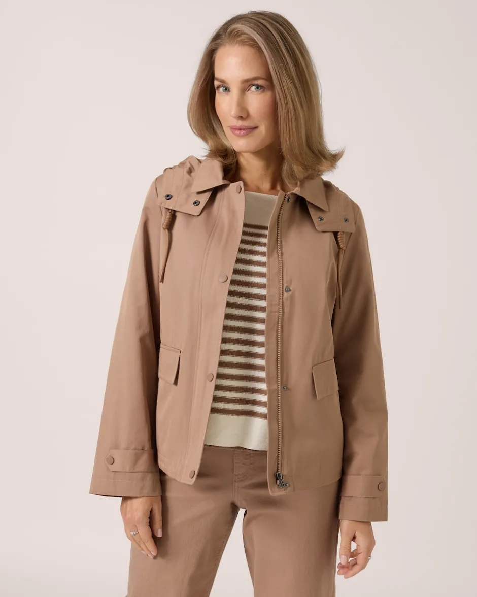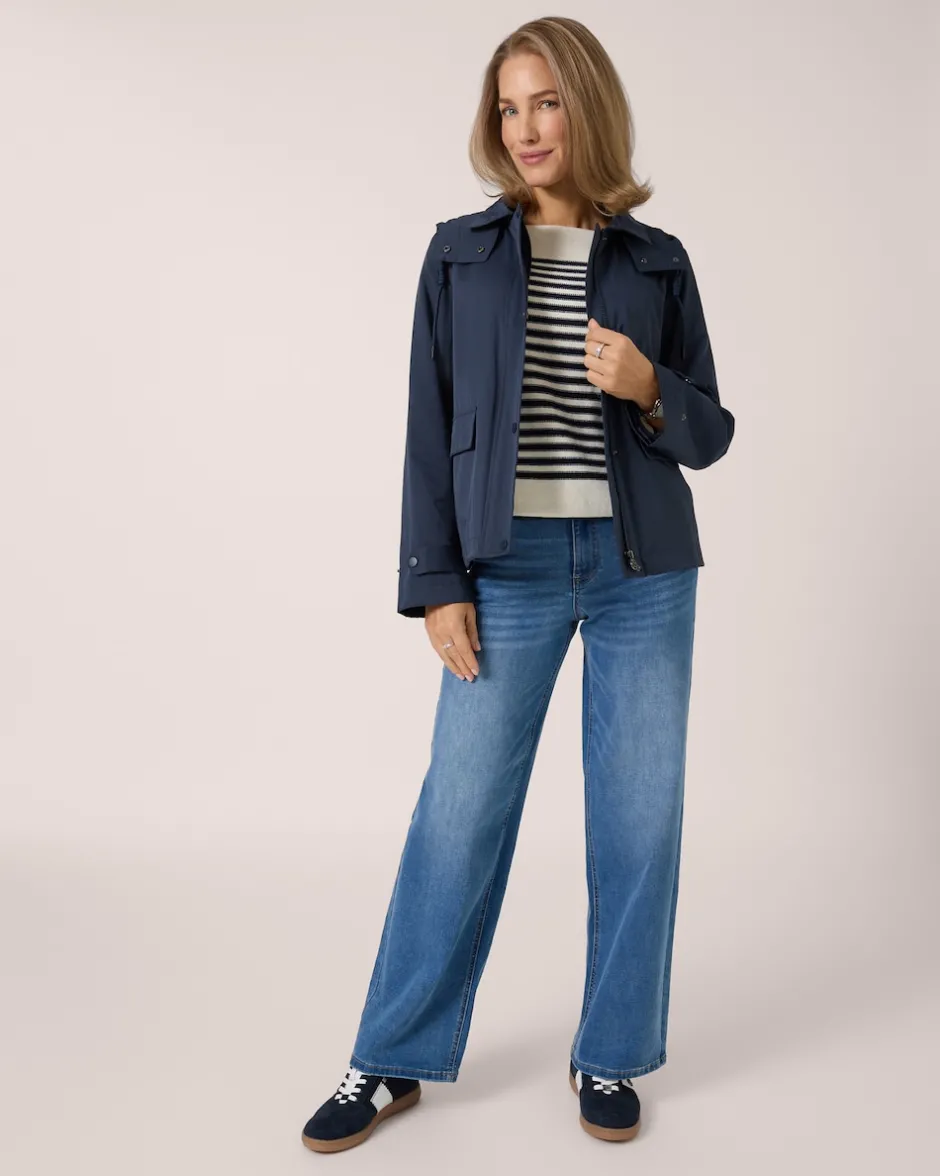 Mit der sportiven Freizeitjacke aus der Modelinie THOM by Thomas Rath trotzen Sie Wind und Wetter auf stylische Art. Das Designermodell hat eine abnehmbare Kapuze und wird mit einem vielseitigen Zweiwegereißverschluss aus Metall geschlossen. Der Langarm erhält durch die Patte mit Druckknopf ein elegantes Update und raffinierte Logo-Details wie das Innenfutter oder die Leiste am Saum werden zum Markenzeichen mit Wiedererkennungswert. Ob fürs Büro, Ihre Outdoor-Abenteuer oder Shopping-Ausflüge mit Freundinnen – dieses Multitalent wird zu Ihrem stilvollen Begleiter.