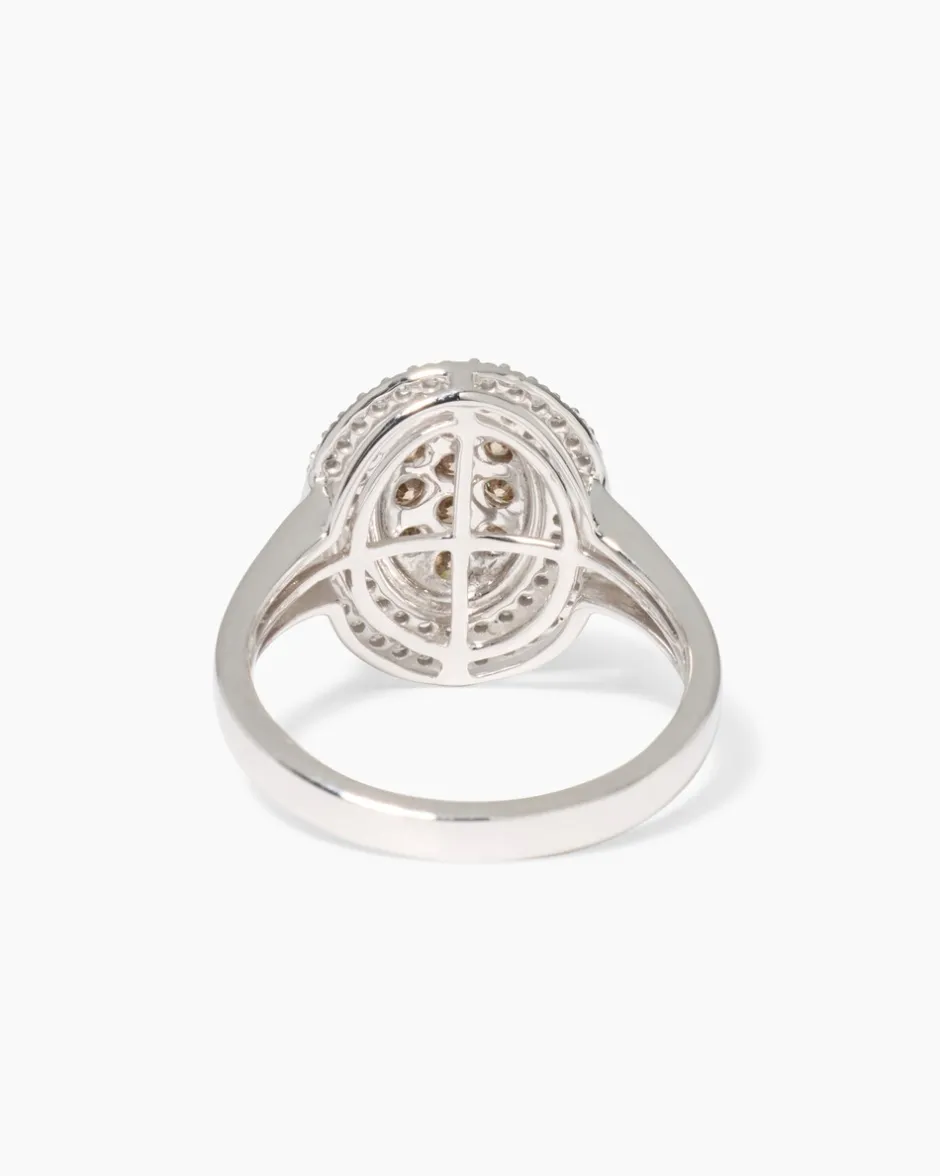 Lassen Sie sich von der schimmernden Pracht unseres Brillantrings verzaubern. Erhältlich in 585er Gelbgold oder Weißgold, bringt dieser hochglanzpolierte Ring Luxus und Stil an Ihre Hand. Der klassische Ringkopf in ovaler Form ist besetzt mit 74 strahlenden Brillanten in Weiß und Champagner. Die Reinheit P1 und die gute Schliffgüte lassen jeden Stein funkeln und glänzen. Im Zentrum des Designs sitzen mittig 10 champagnerfarbene Brillanten, umgeben von einem Doppelrahmen aus 64 weißen Steinen – eine atemberaubende Komposition. Alle Steine sind in Krappenfassungen eingearbeitet, insgesamt ca. 0,75 ct. Dieser Ring ist mehr als nur ein Schmuckstück, er ist ein Ausdruck von exquisitem Geschmack und Eleganz. Lassen Sie ihn Ihr neues Lieblingsaccessoire werden.