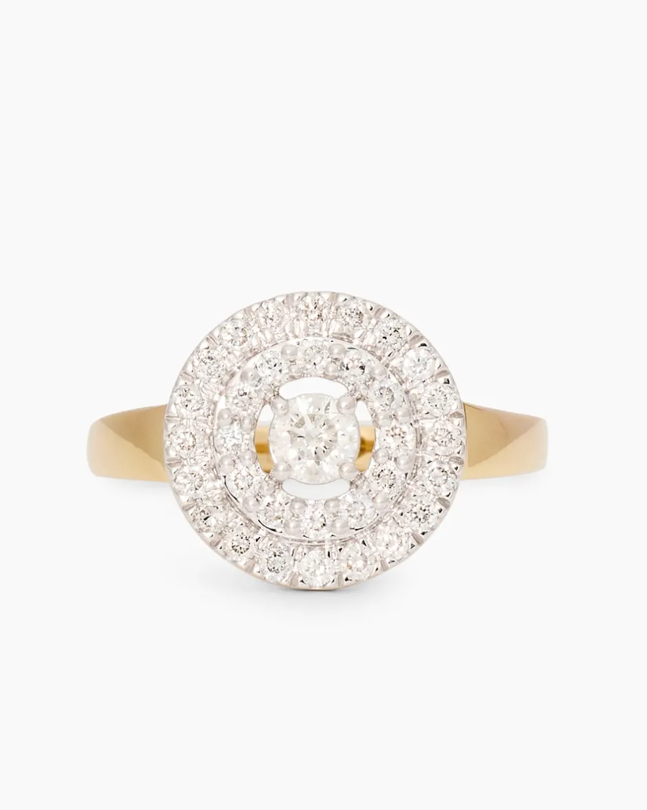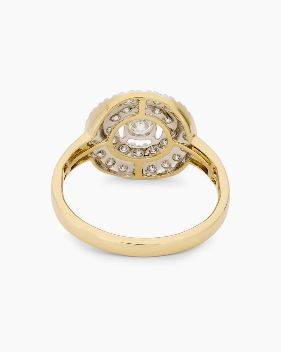 Hier kommt ein neues Schmuck-Highlight von Marvin Kulik für Liebhaberinnen von Brillanten. Der luxuriöse Ring ist aus teilweise rhodiniertem und hochglanzpoliertem 585er Gelbgold gefertigt. Den Ringkopf zieren insgesamt 33 runde Brillanten in verschiedenen Größen, die in Krappenfassungen sitzen oder dicht an dicht im Pavé gefasst sind. Alle Steine verfügen über die Reinheit SI und sind gut geschliffen. Die Rhodinierung bringt die strahlende Schönheit der noblen Edelsteine noch intensiver zur Geltung. Natürlich wird Ihnen der Ring in einem Etui mit Zertifikat geliefert.