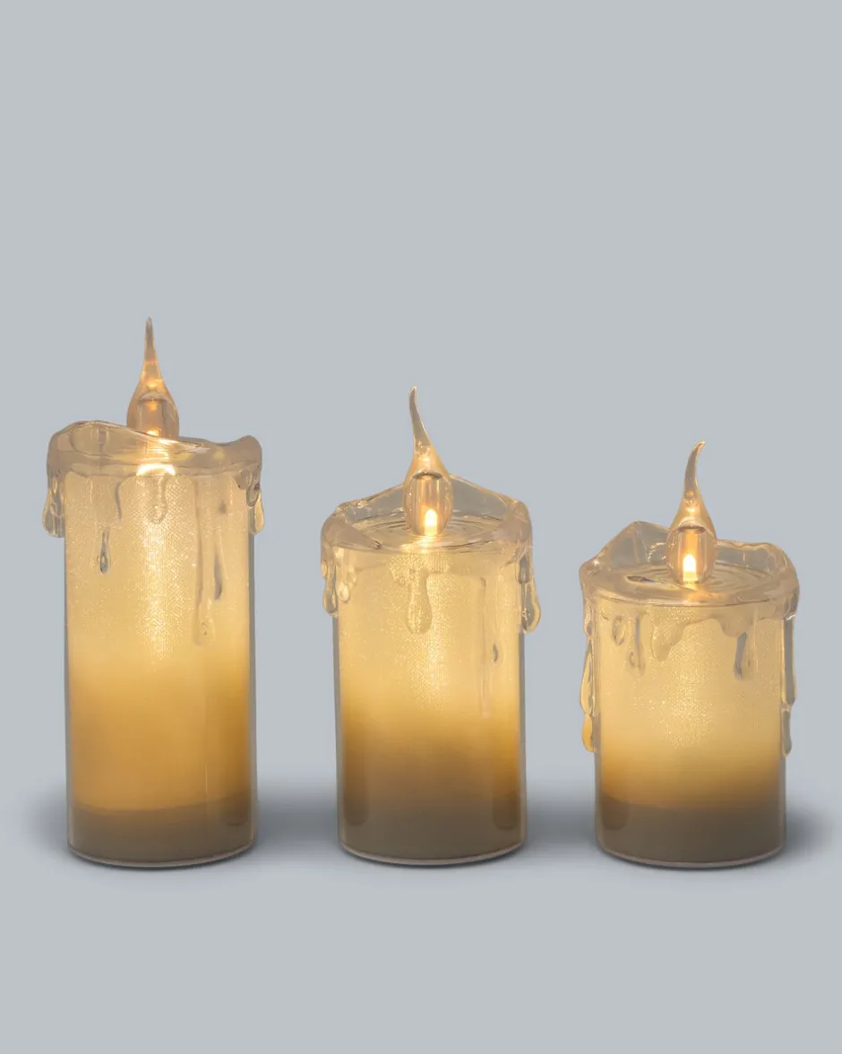 | Lieferumfang: | 3x Lumesso Kunststoff-Kerzen „Glitzer“, LED-beleuchtet | |