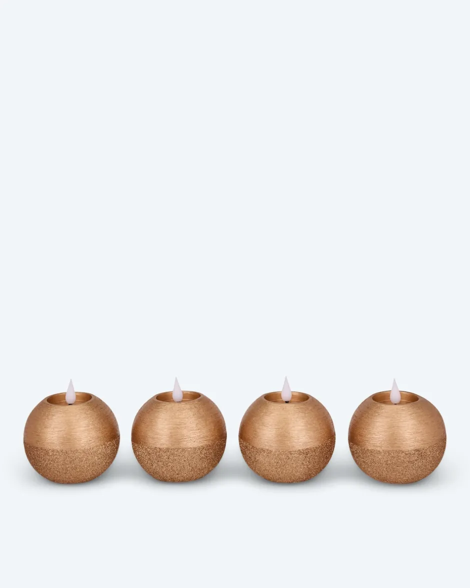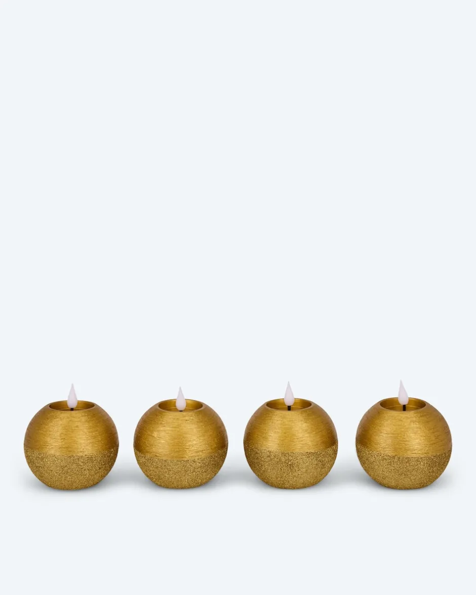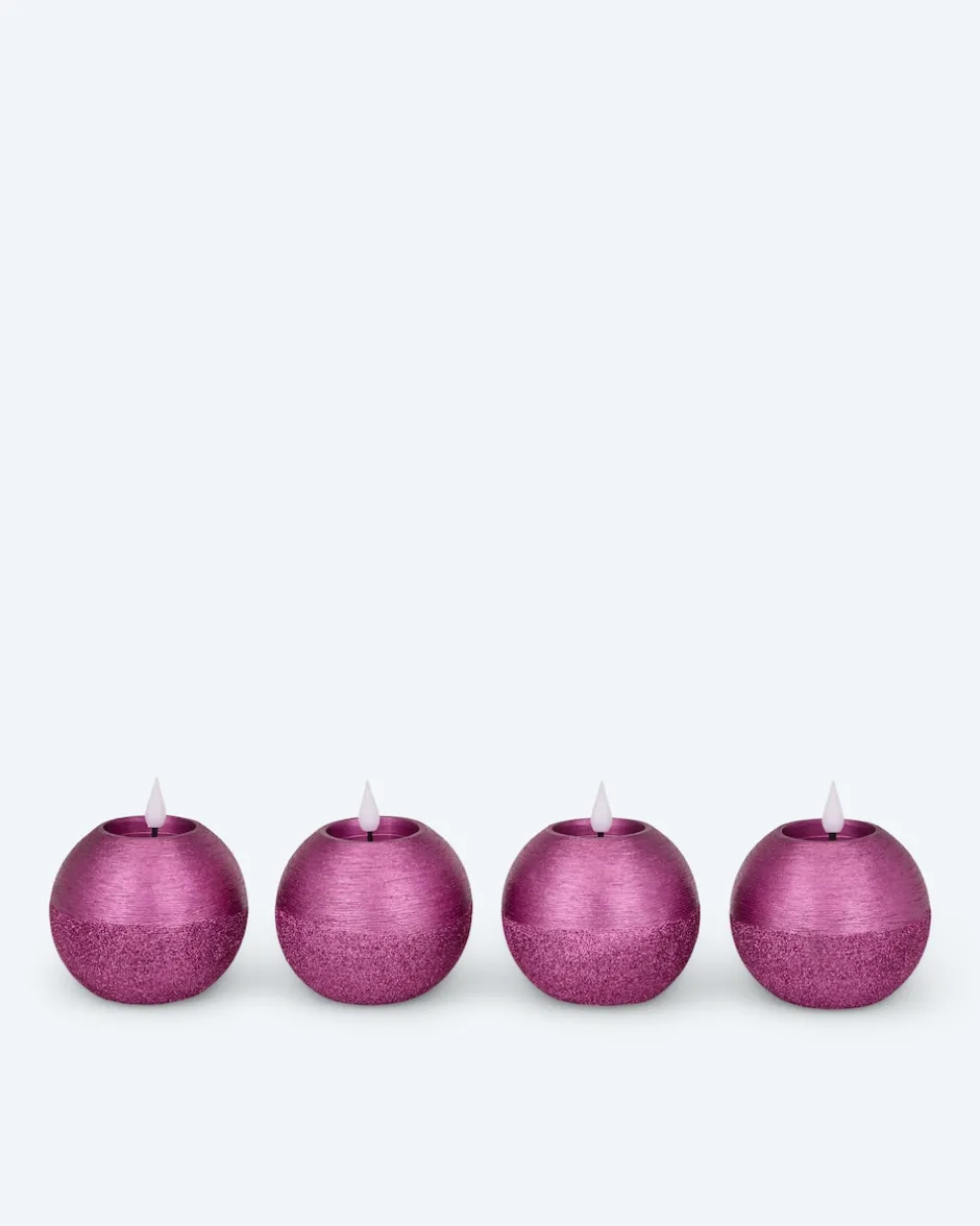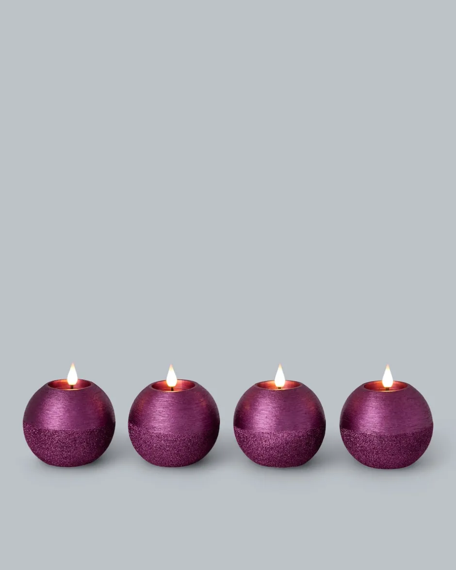 Edler Kerzenakzent: Vier LED-Kugelkerzen in Metallic-Glitzer
