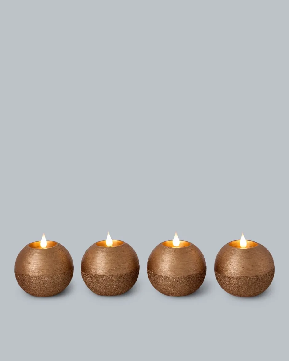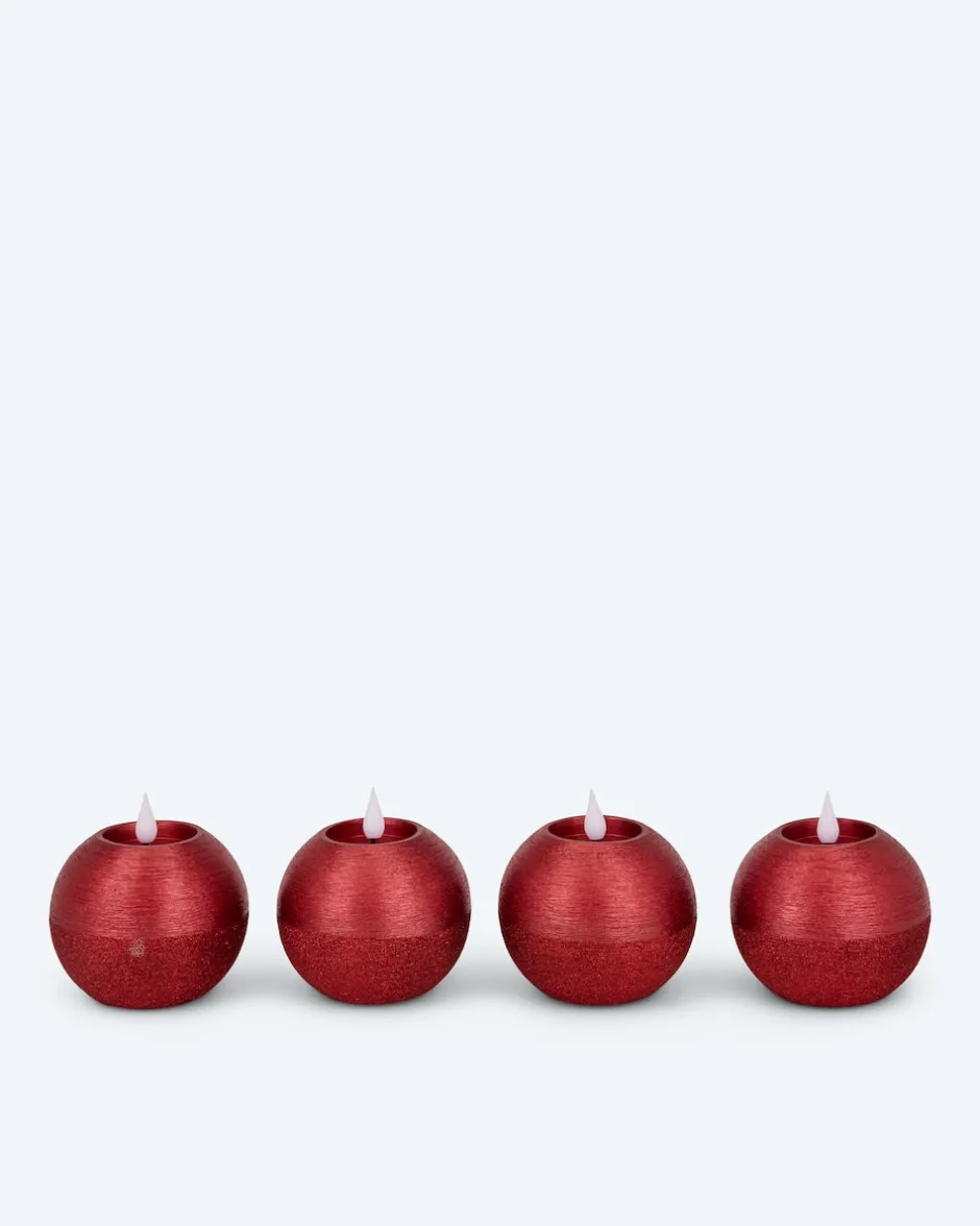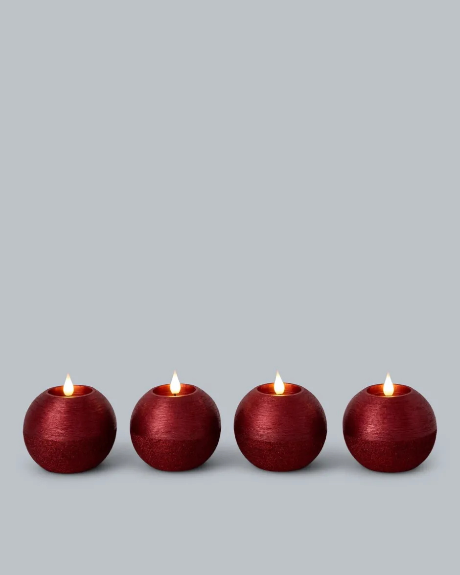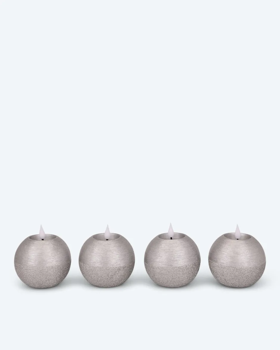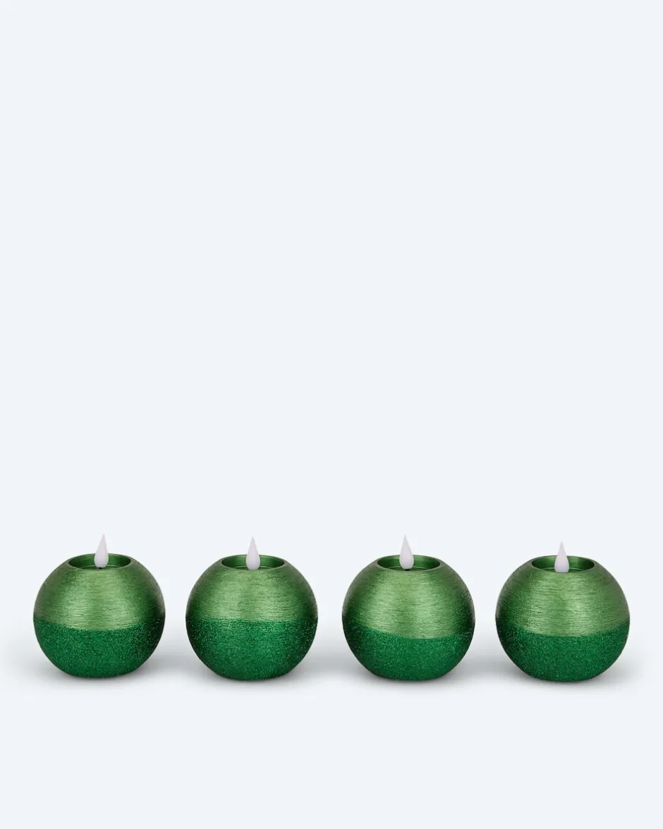 Edler Kerzenakzent: Vier LED-Kugelkerzen in Metallic-Glitzer